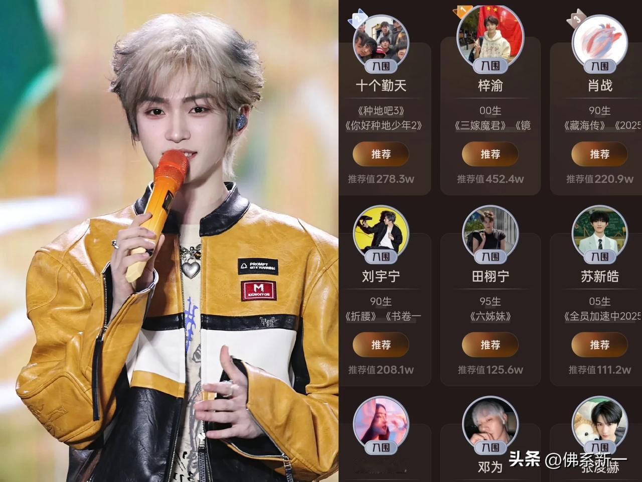 这是咋回事啊 微博视界大会投票肖战竟然不是第一? 这是顶流换人了吗,第一竟然是00后梓渝 前十竟然只有一个女艺人迪丽热巴[赞] 第二是十个勤天,这是男团齐上阵吗? 刘宇宁第四很不错,感觉《折腰》《书卷一梦》开播后,越来越向实力流量演员路线发展了 邓为、张凌赫也是前十还不错,倒是没有看到成毅、罗云熙、任嘉伦等艺人了,内娱更新换代这么快吗? 肖战 热巴 刘宇宁 邓为