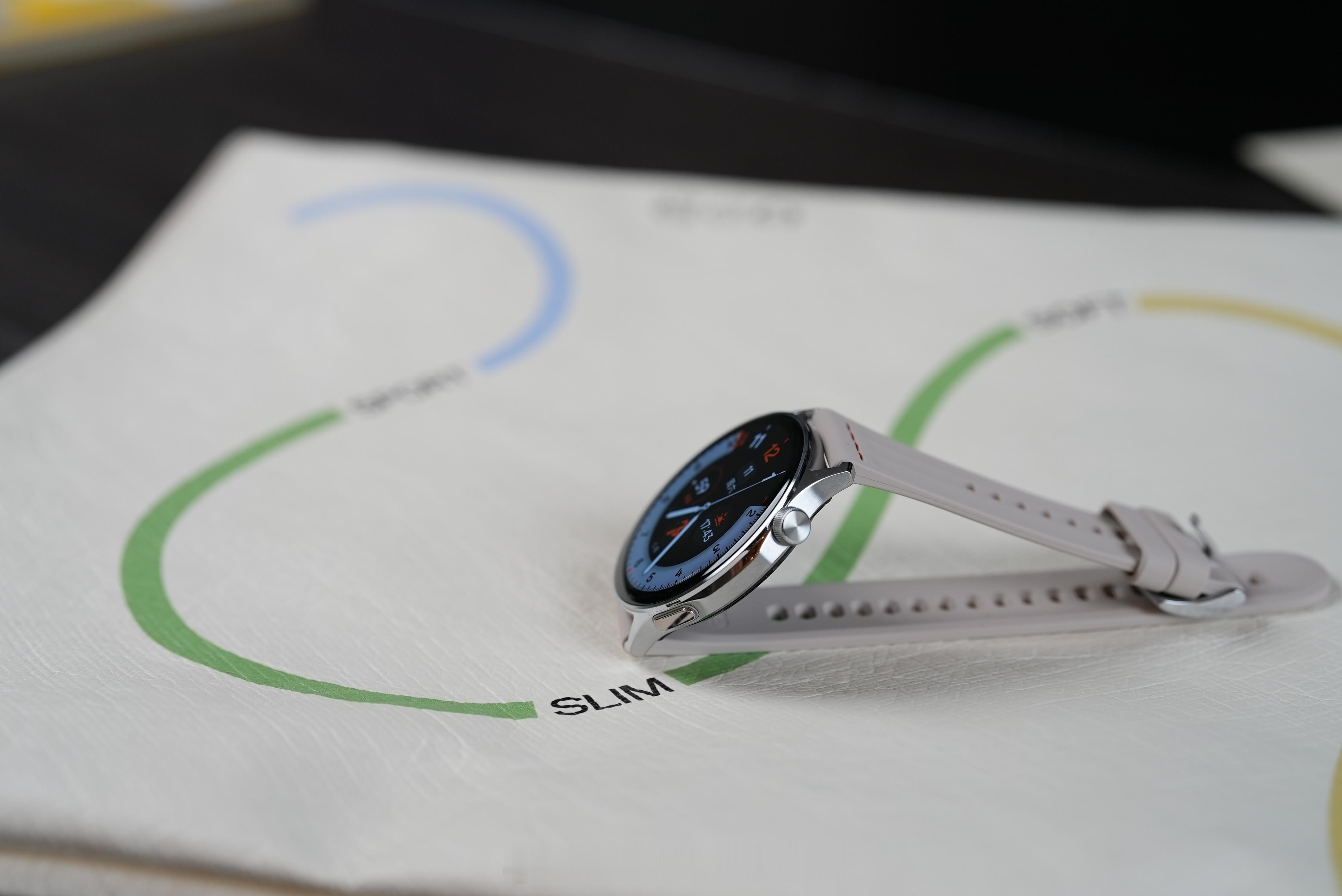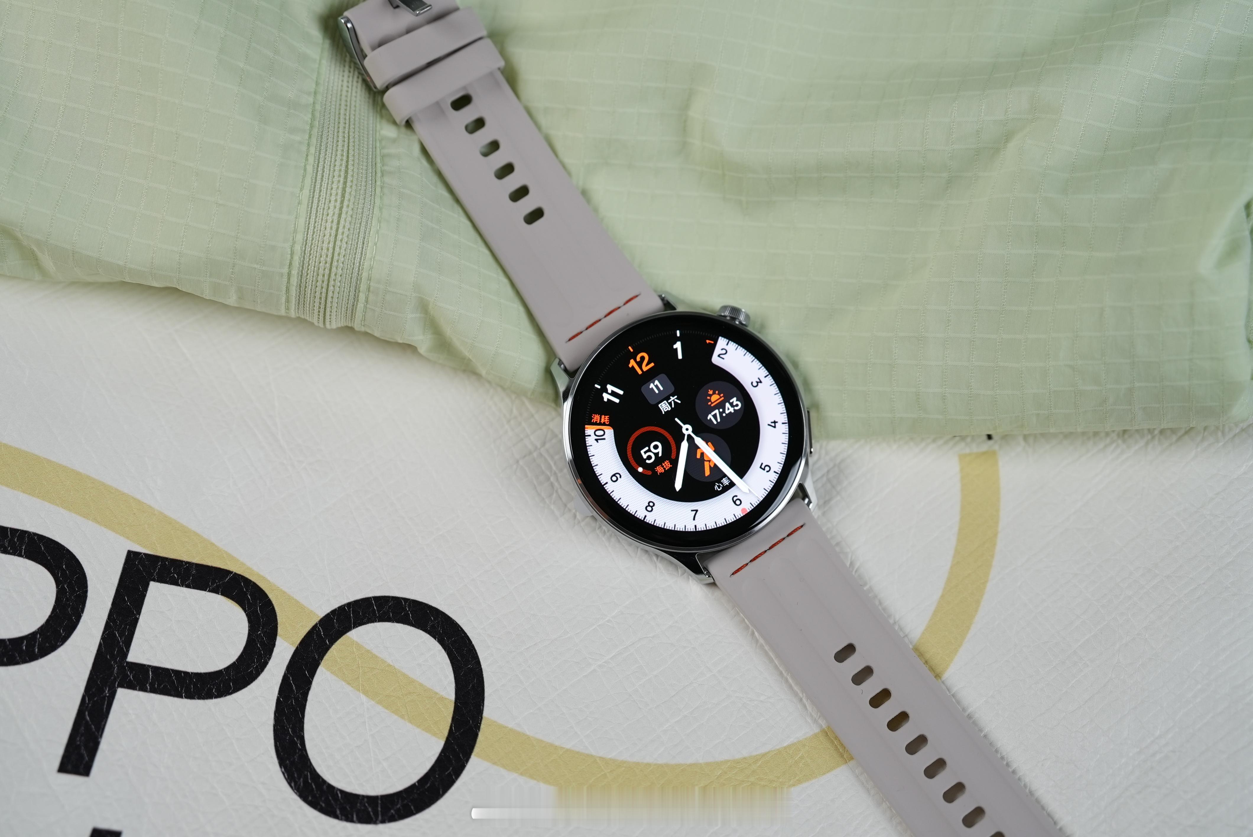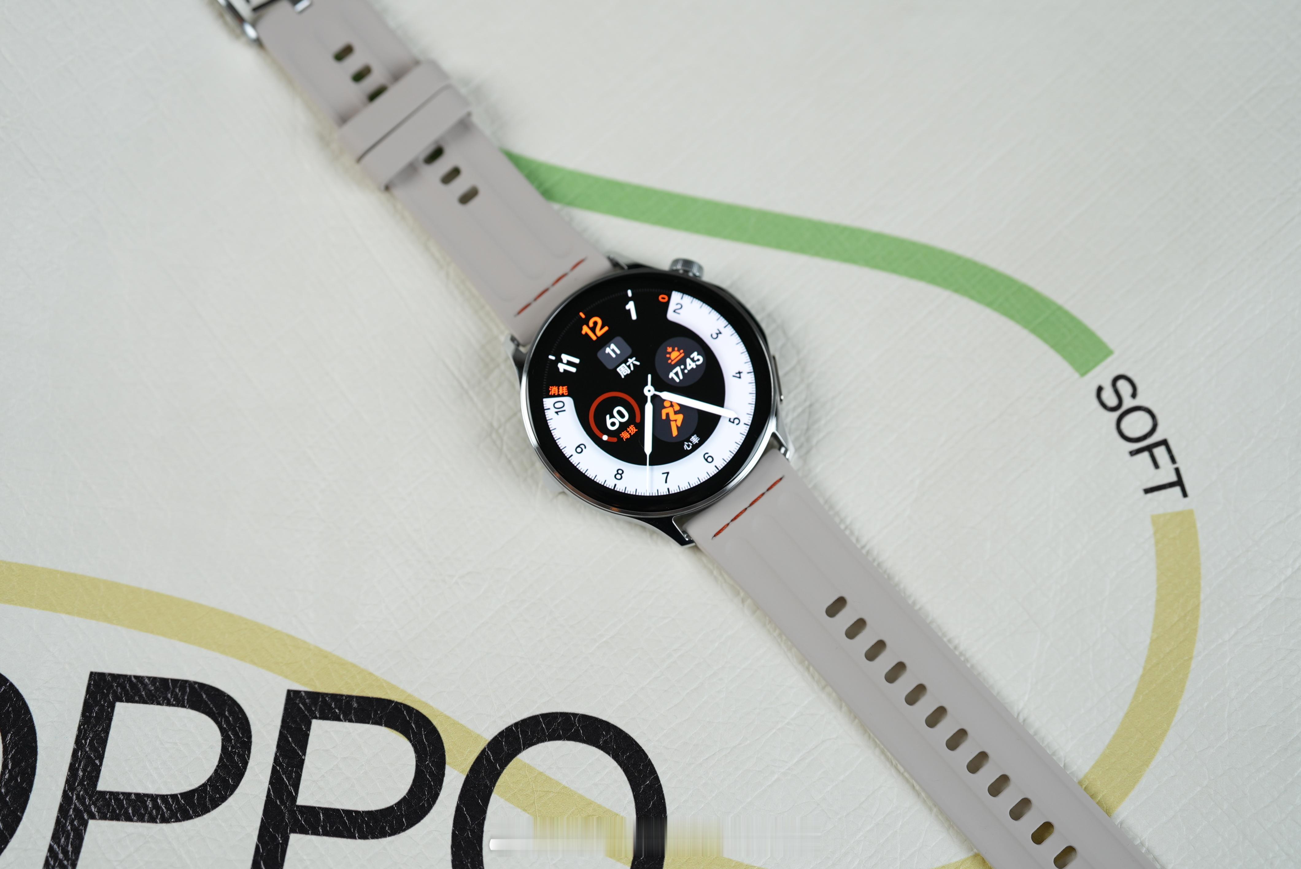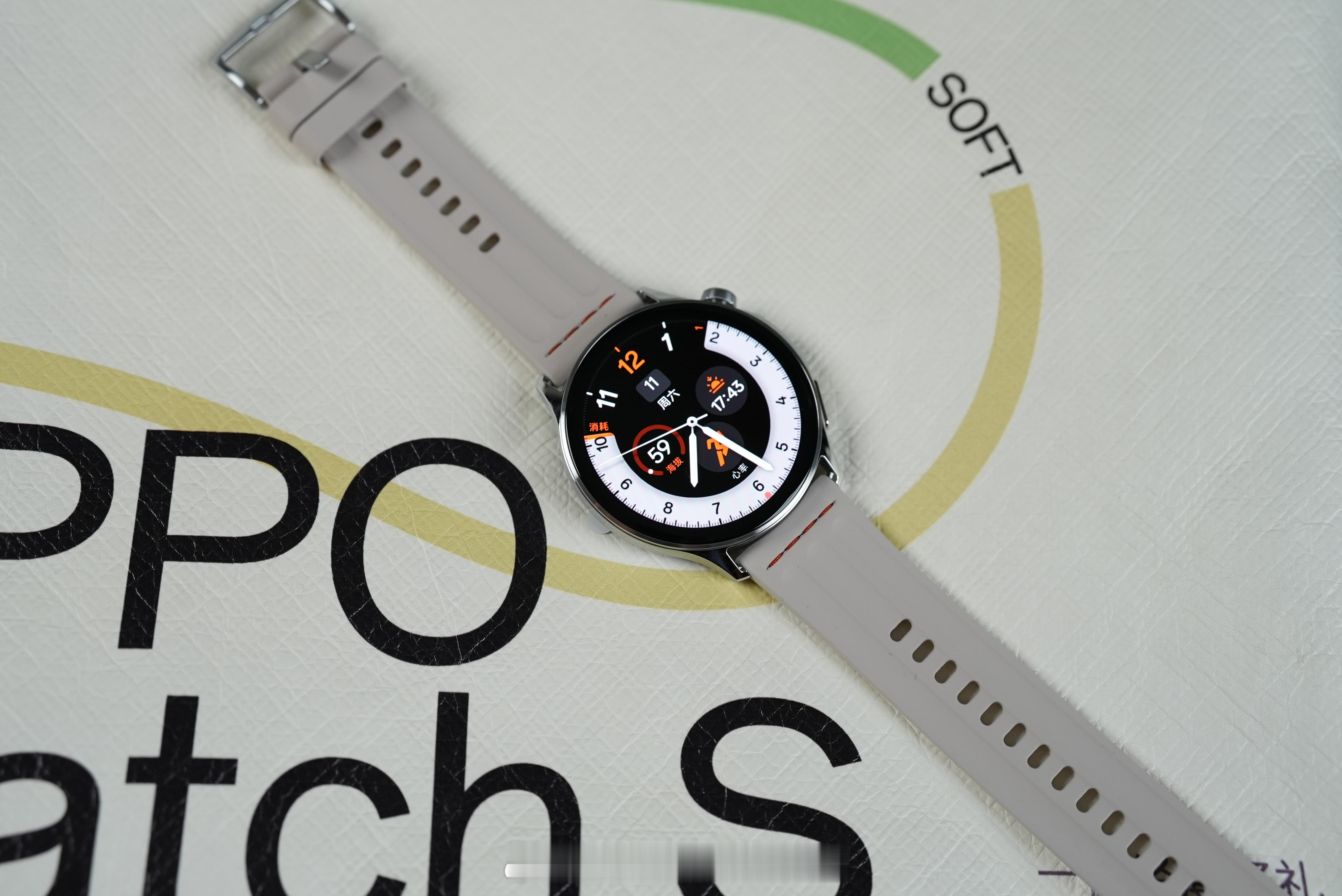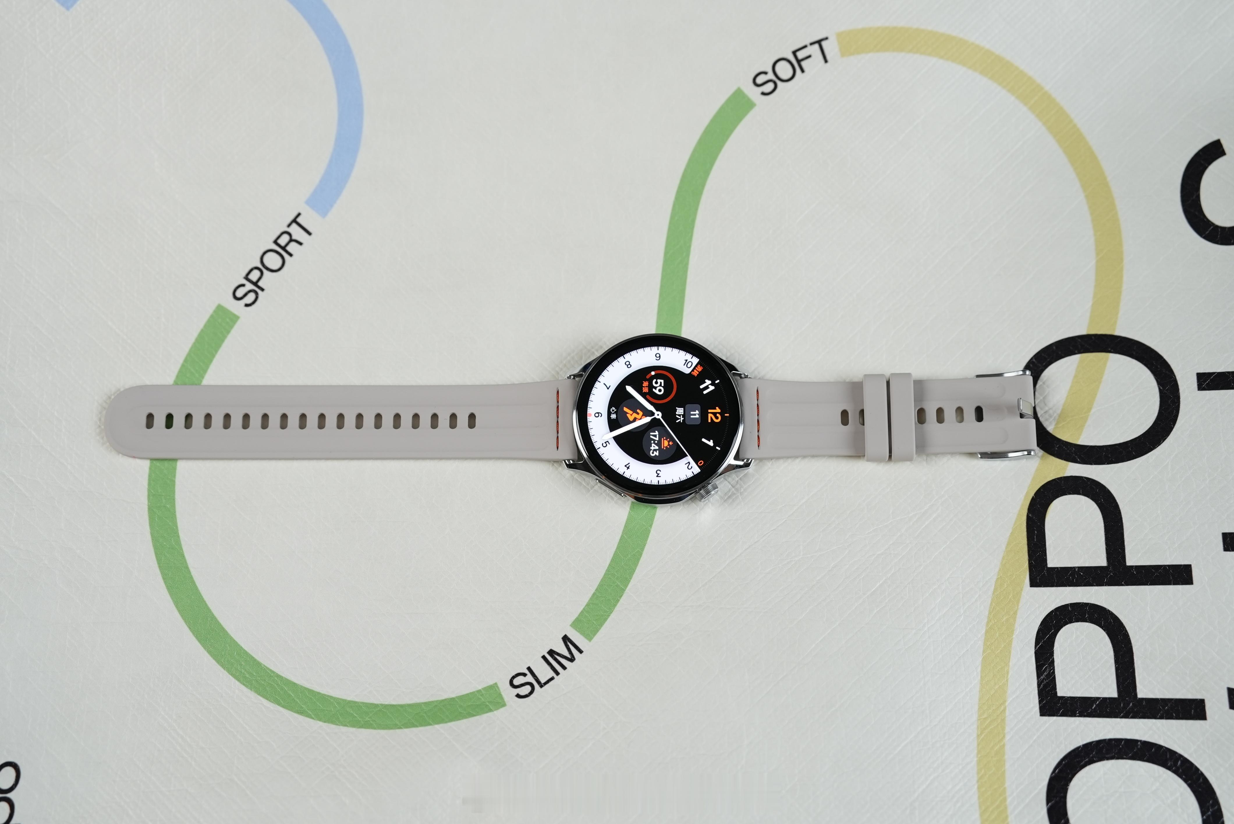 OPPO Watch S 真是薄啊,这是我戴过的最薄的智能表,佩戴无感舒适,颜值也非常在线!表壳采用精钢材质,搭配正面 2.5D 弧面玻璃,看着十分精致,搭配硅胶的运动表带,整体看起来非常清新!