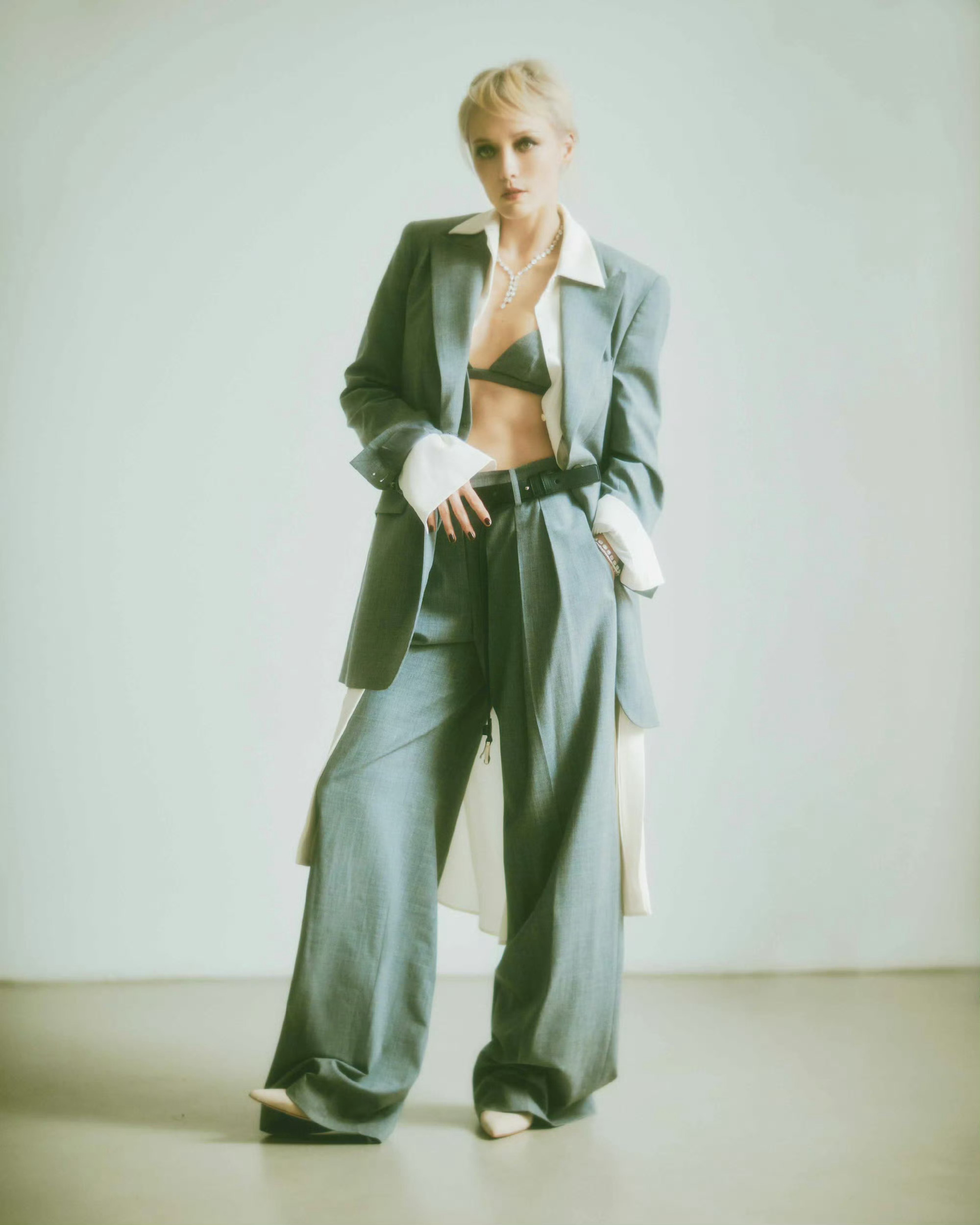 刘亦菲把死亡玫粉穿出了定制款的感觉,这种颜色普通人穿上分分钟黑三度,她居然能穿出