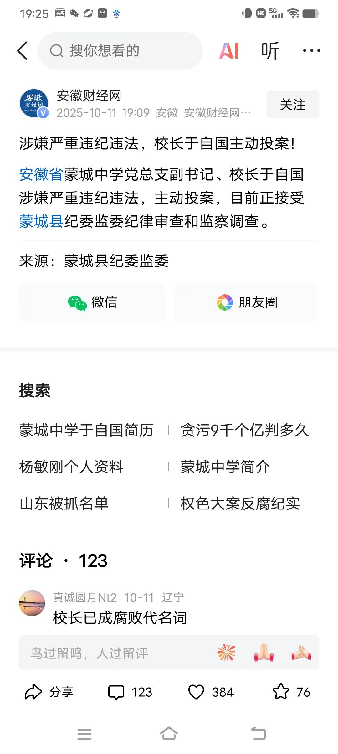 校长自首!教育腐败,误国害民。应该在全国统一查一下所有的校长,包括已经退休的,看