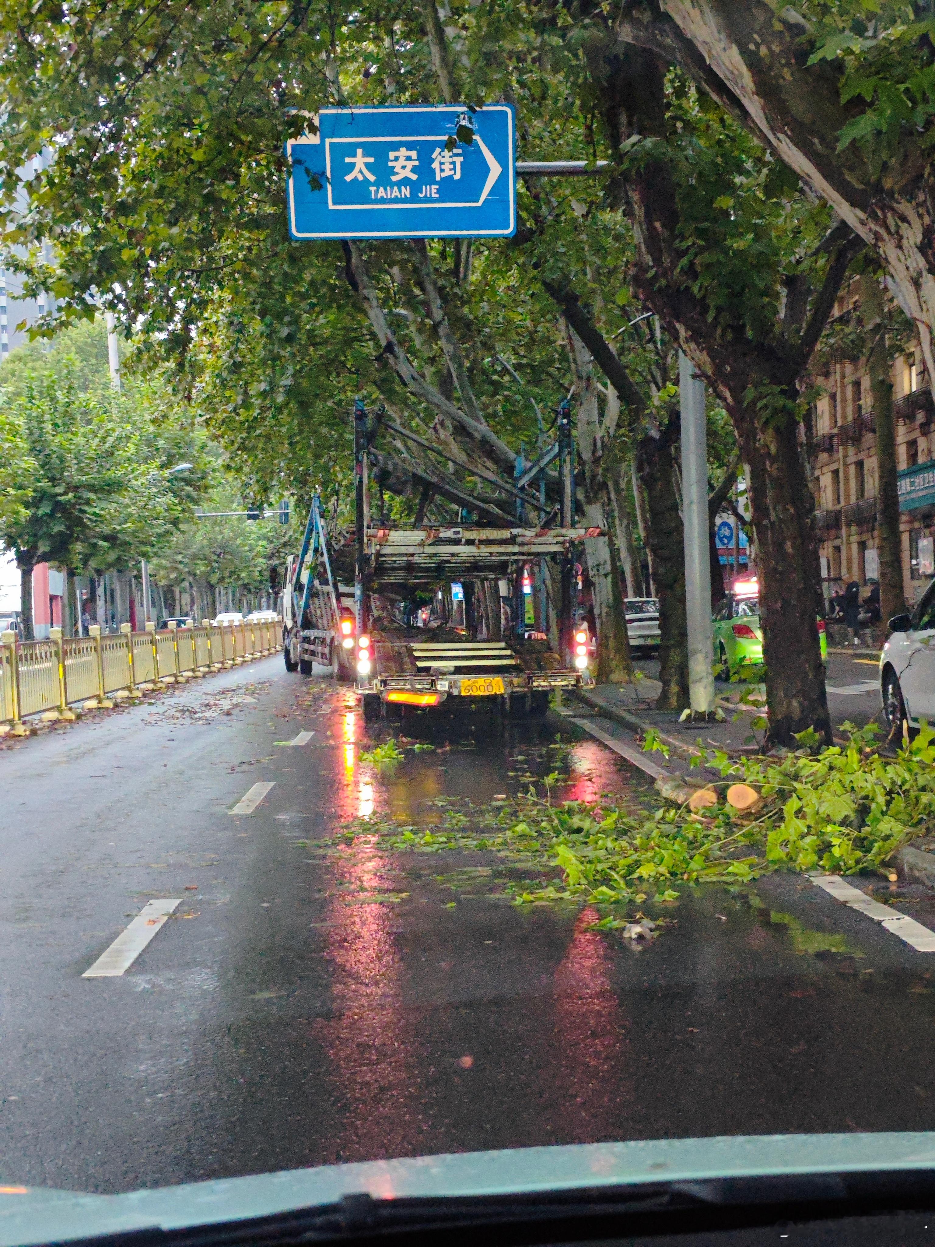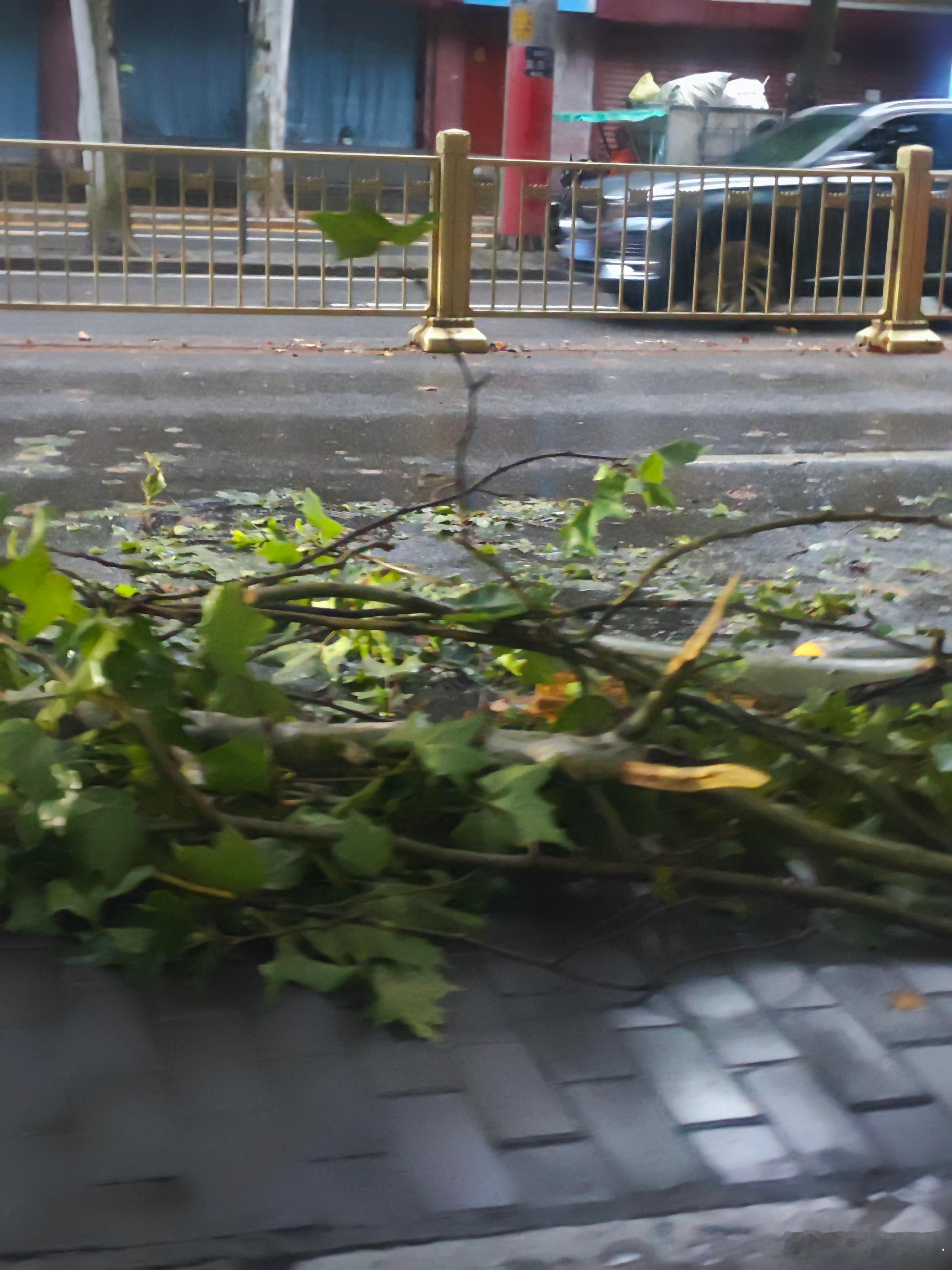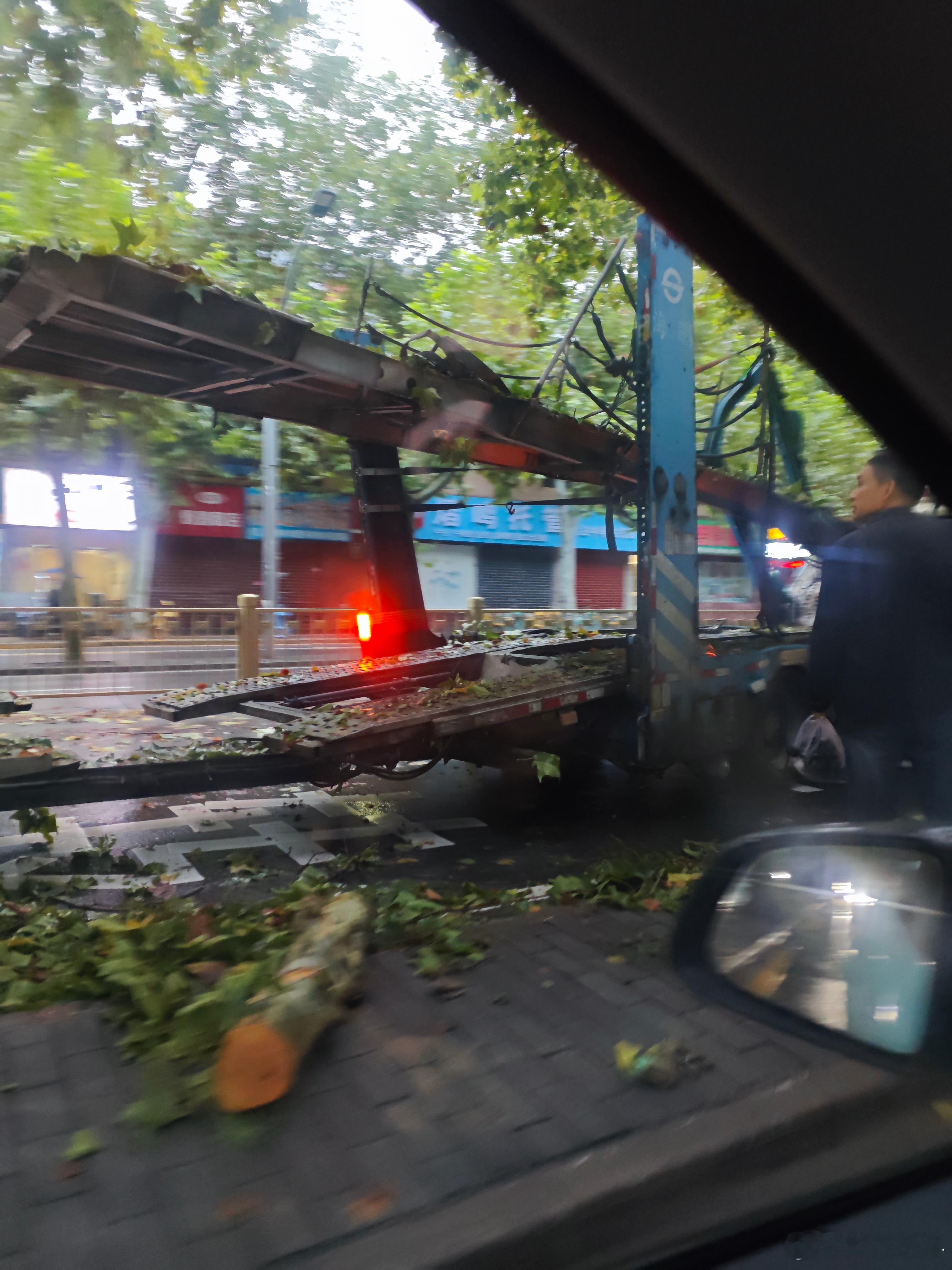 太乙路,一台车辆运输车挂断不少梧桐树的枝杈,从都到尾的栅栏结构损坏,这种车不能进三环,这下完犊子了,估计赔不少钱。