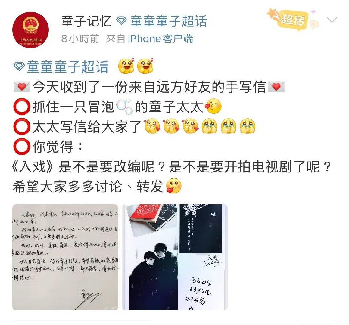 入戏 谁懂这种感觉!手写信太有诚意了,现在很少见,这是要改编的节奏吧?等消息!