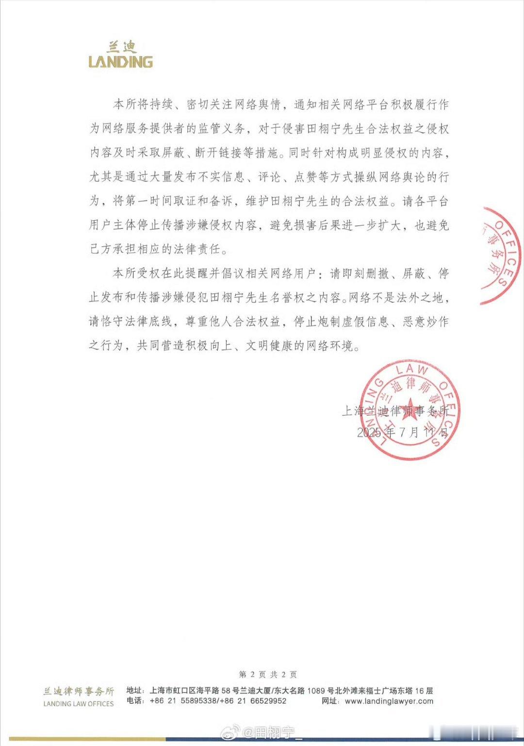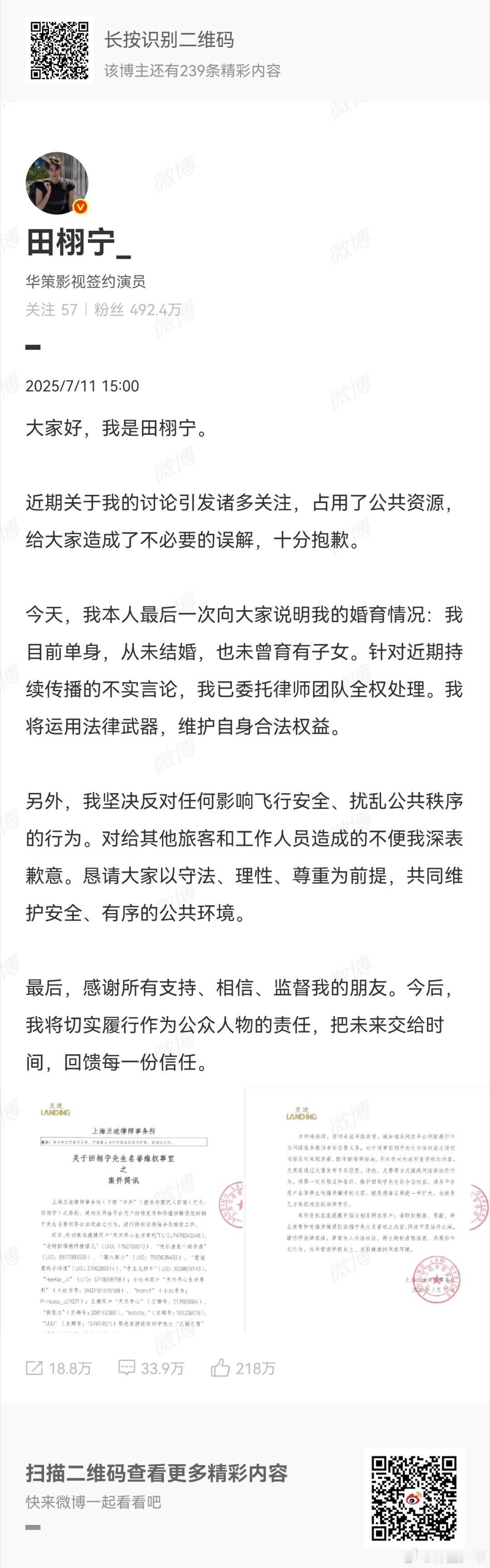 田栩宁七月份的单身声明田栩宁七月份发过的单身声明,所以还是等一个回应吧,田栩宁若