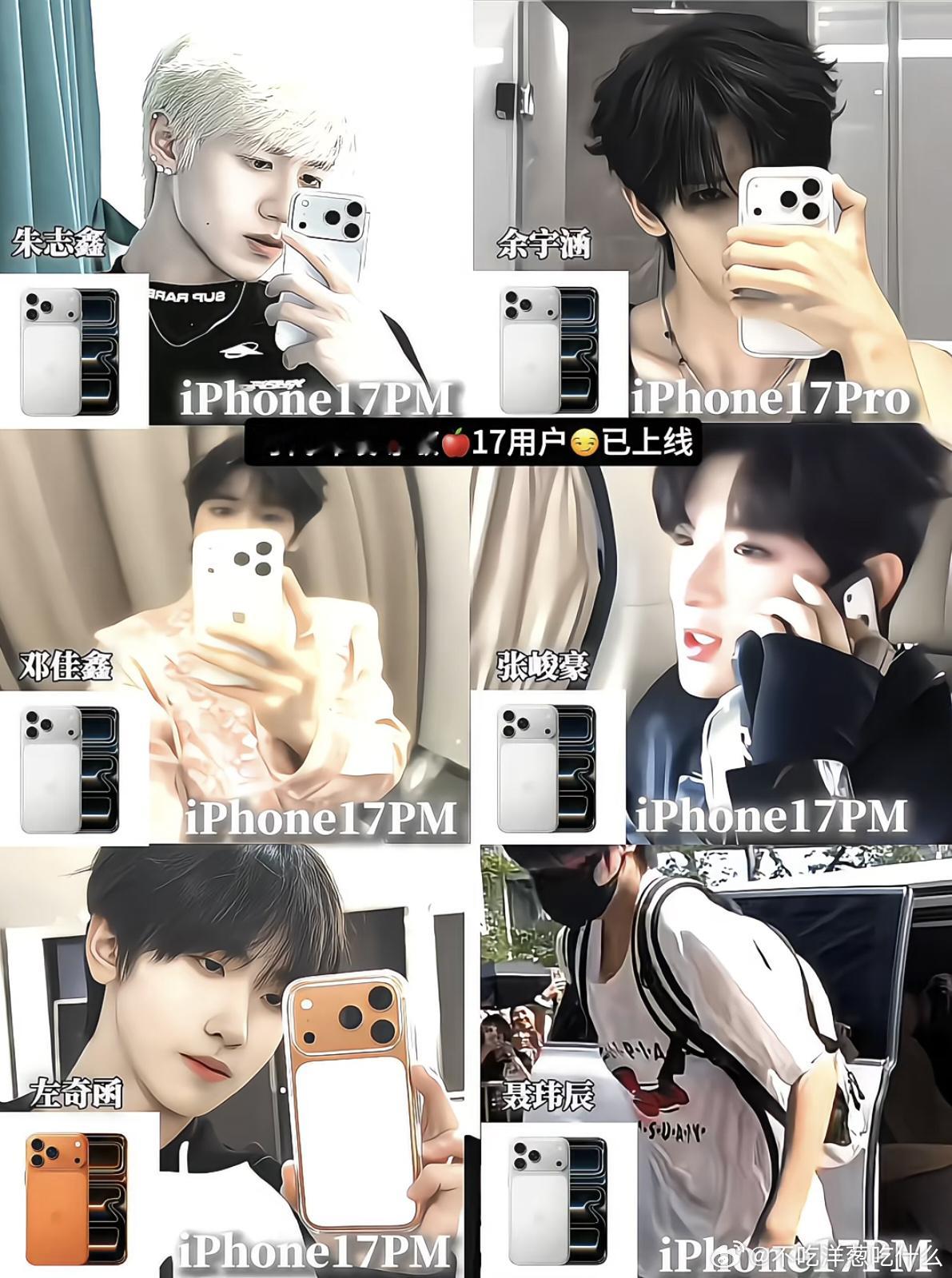 苏新皓 朱志鑫 余宇涵 邓佳鑫 张峻豪 左奇函 聂玮辰都用上了iPhone17 Pro Max🍎
