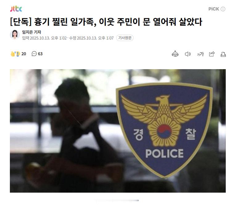 韩国京畿道议政府市某公寓的电梯内,发生了一起一家三口遭利器刺伤的案件,但邻居迅速协助他们避难,从而挽救了他们的生命。