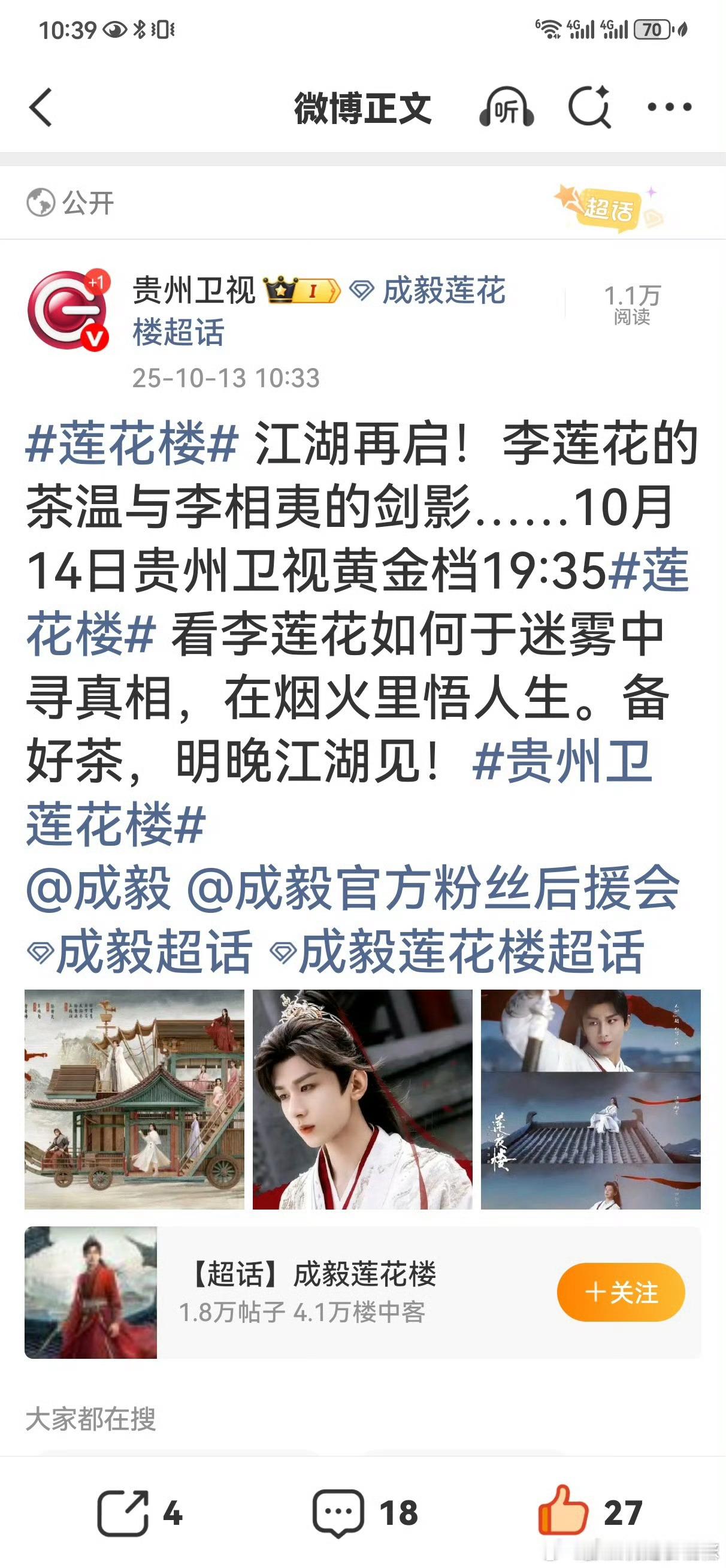 成毅莲花楼上星贵州卫视黄金档 ,贵州卫视说还有惊喜,你们觉得是什么惊喜?我觉得要么是赴山海要么是花大价钱买了天地剑心?????这贵州卫视发狠了?[笑cry]成毅[超话]