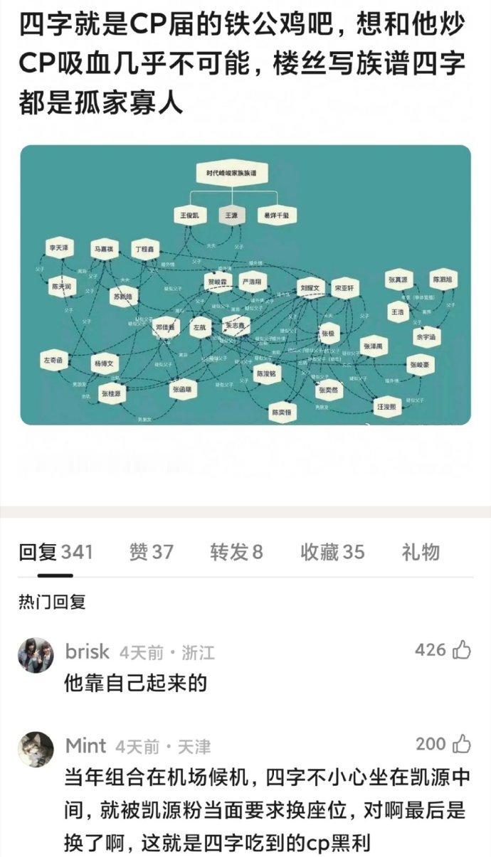 网友总结楼内关系图,易烊千玺是里面唯一一个没吃过cp红利的诶。是不是很难得