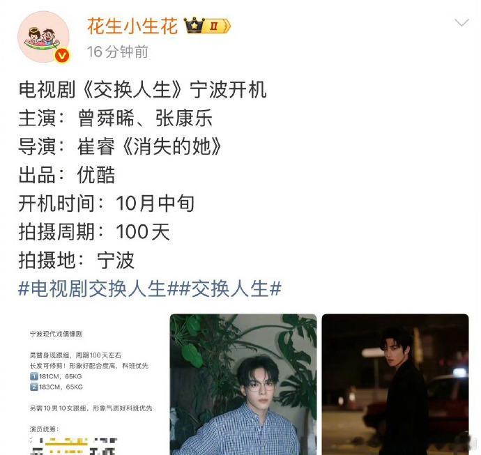 曾舜晞 张康乐《交换人生》官博开通,期待谁?剧集交换人生官博曾舜晞张康乐新剧官博