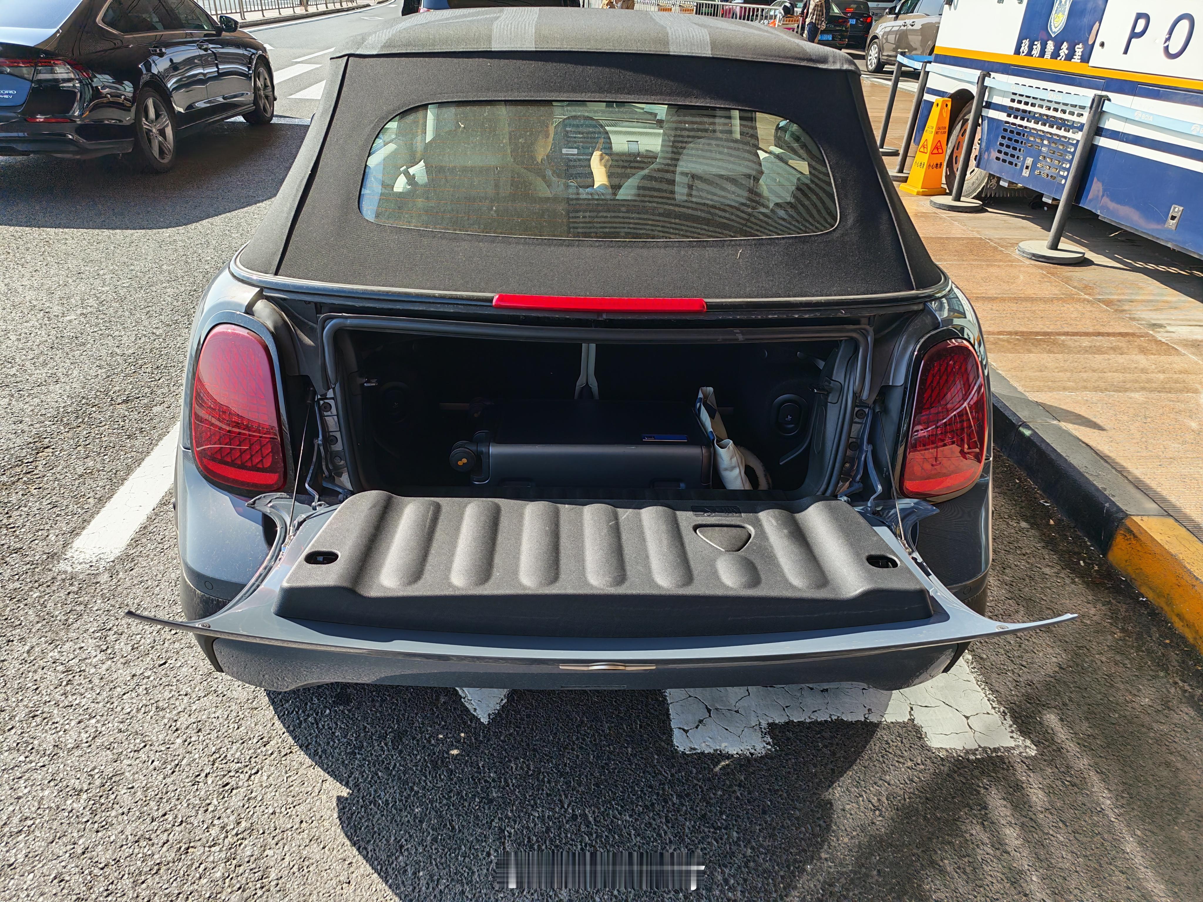 敞篷MINI的后备厢竟然是天地门,有点意思啊,承重80Kg,适合周末坐在车上享受