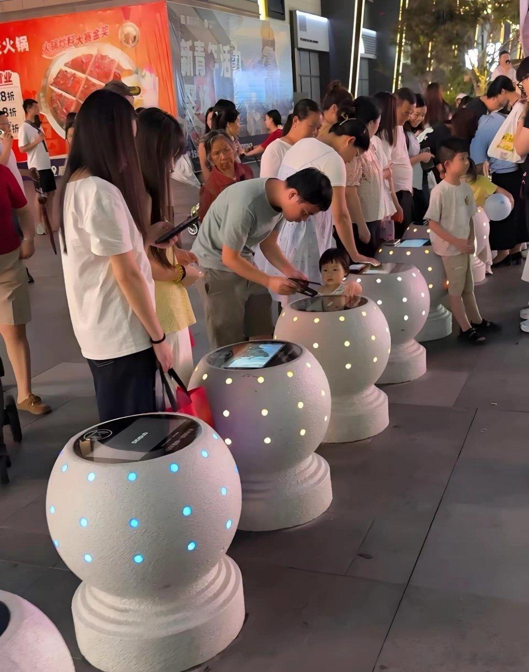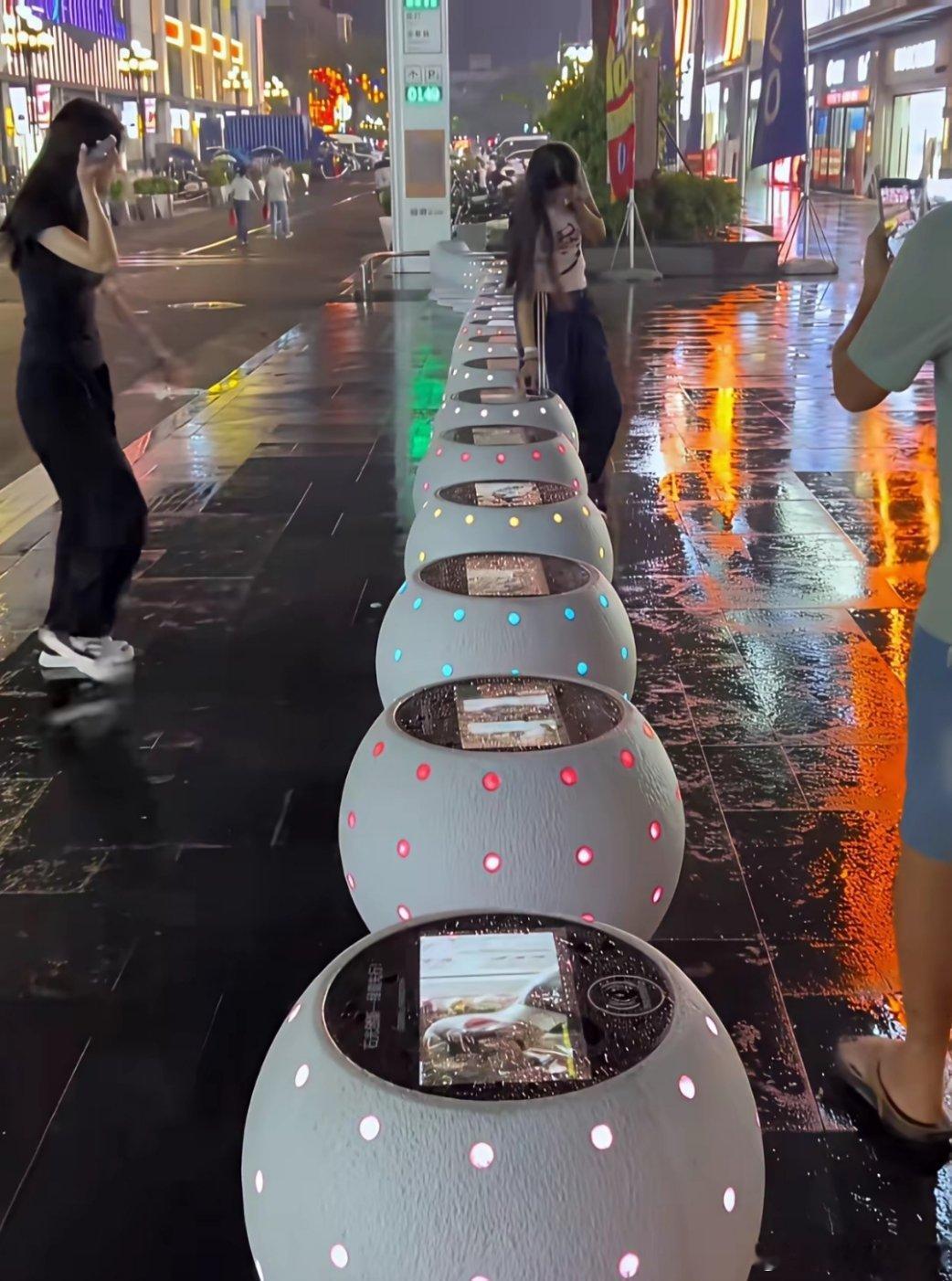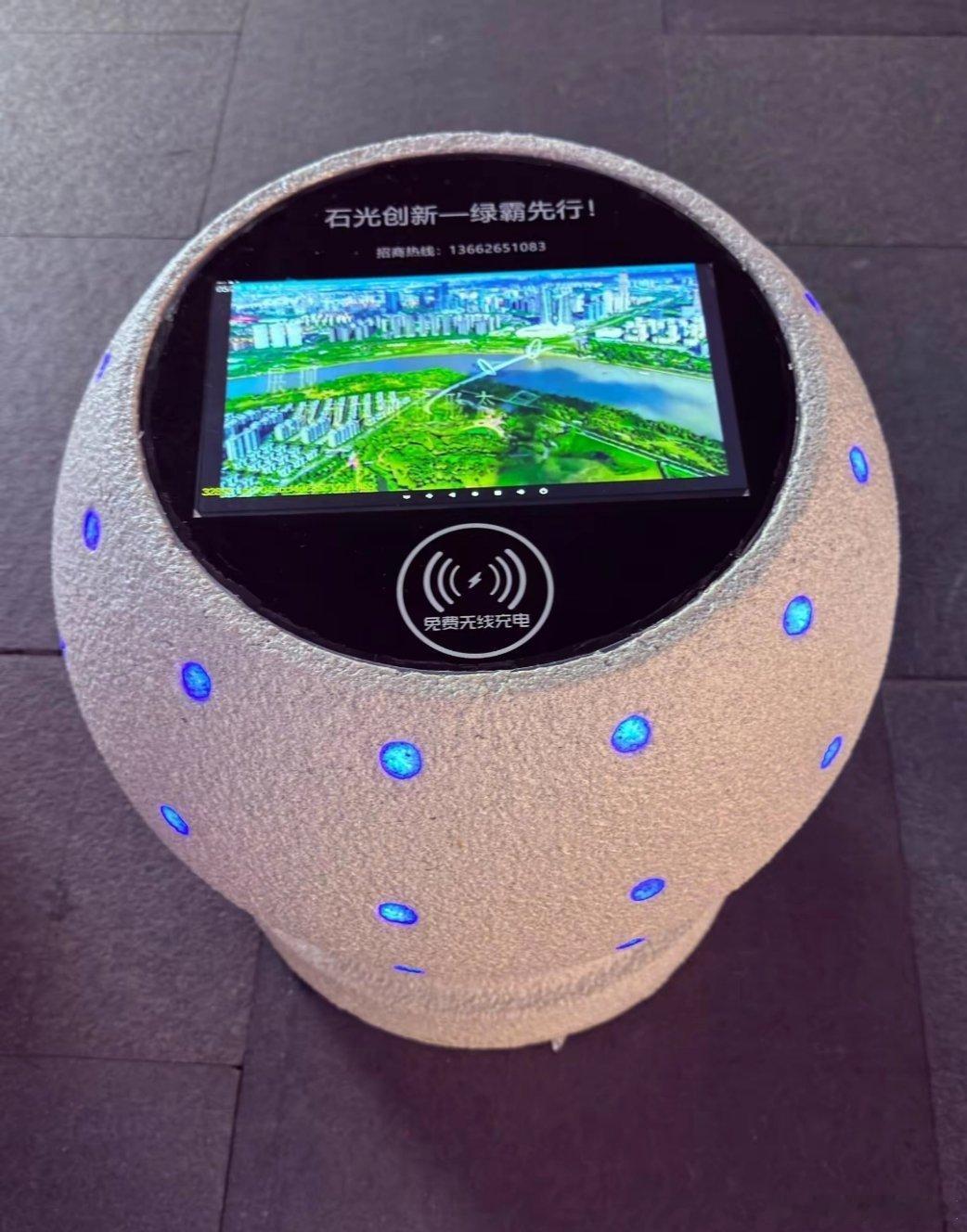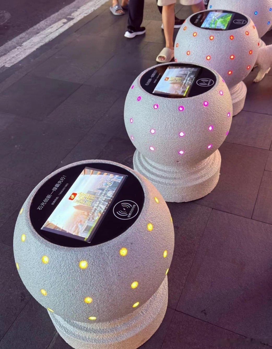 深圳龙华后浪新天地,“石墩子”可以给手机无线充电。逛街累了歇脚还能顺便给手机补电,就不知道无线充电功率大不大?