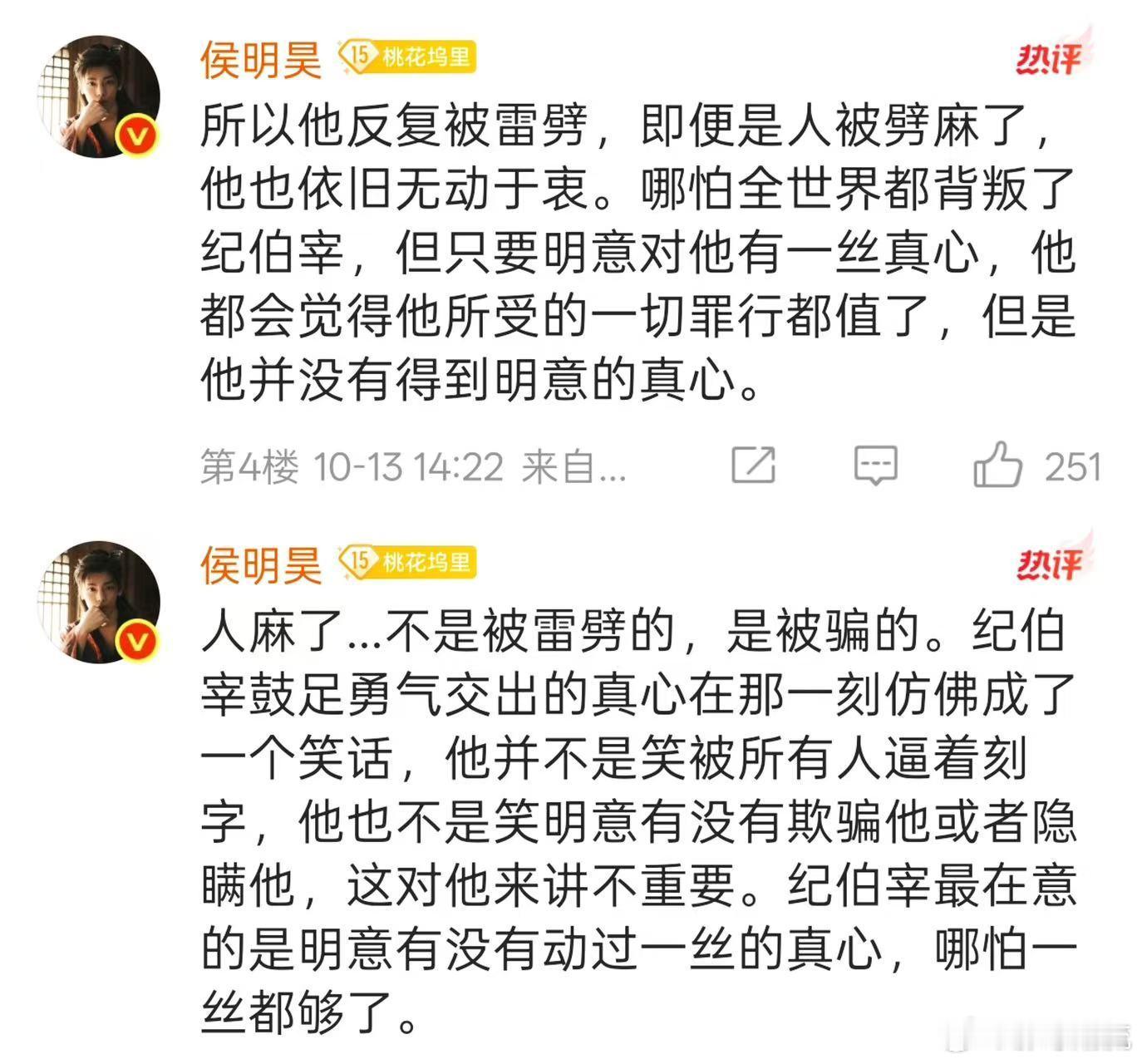 纪伯宰 先爱上的成了输家 纪伯宰从冷静到迷失,侯明昊将他心甘情愿败北的情感展现得恰到好处,眼神里藏着所有的悔恼和无奈,简直太苏了。 ​​​
