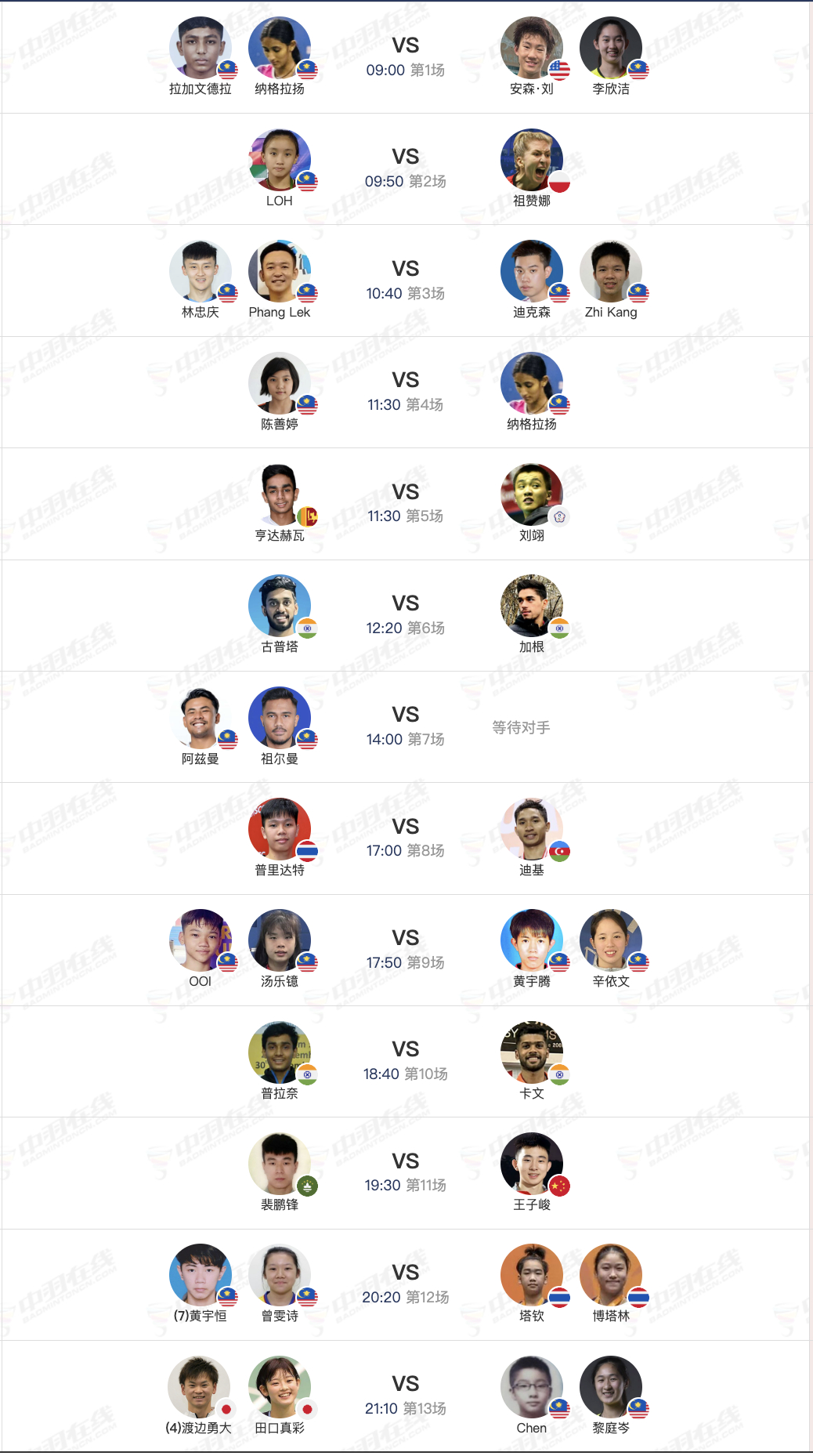 2025年大马羽毛球100赛,10月14日资格赛+正赛赛程,资格赛9点开赛,正赛17点开赛: