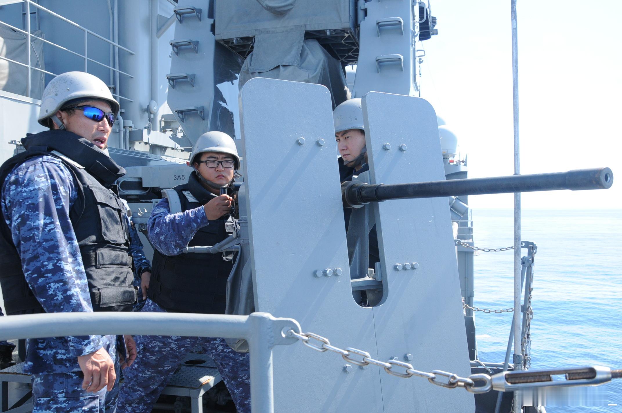 10月初海自举行的反水雷演练,157“泽雾”号驱逐舰使用美制M-2重机枪模拟射击漂雷。