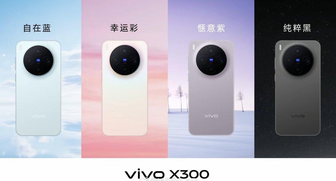 vivo X300系列标准版有自在蓝、幸运彩、惬意紫、纯粹黑 4 款配色