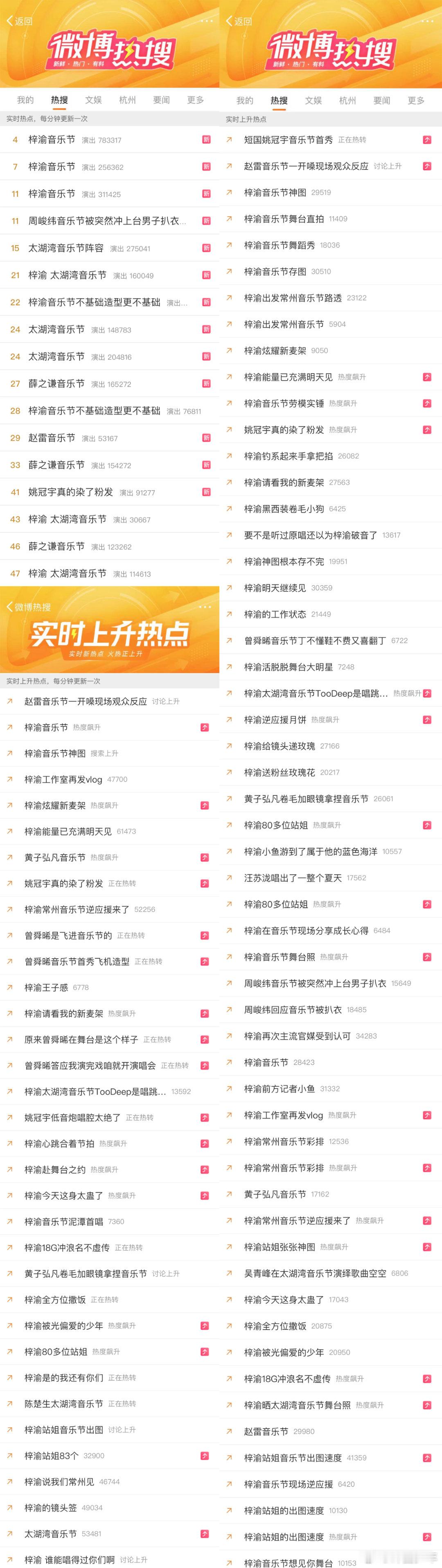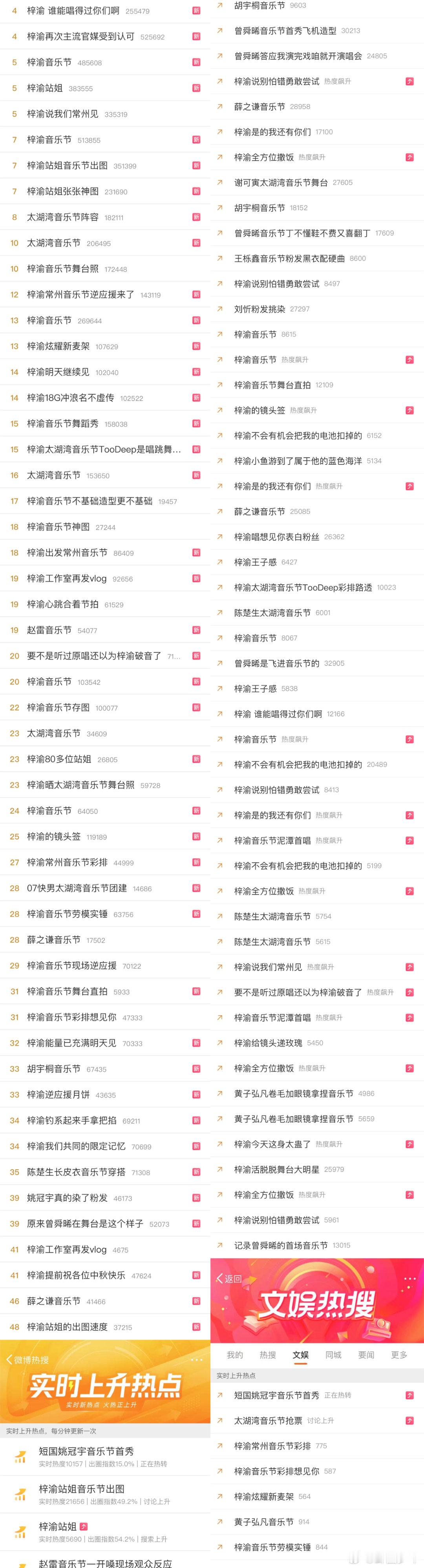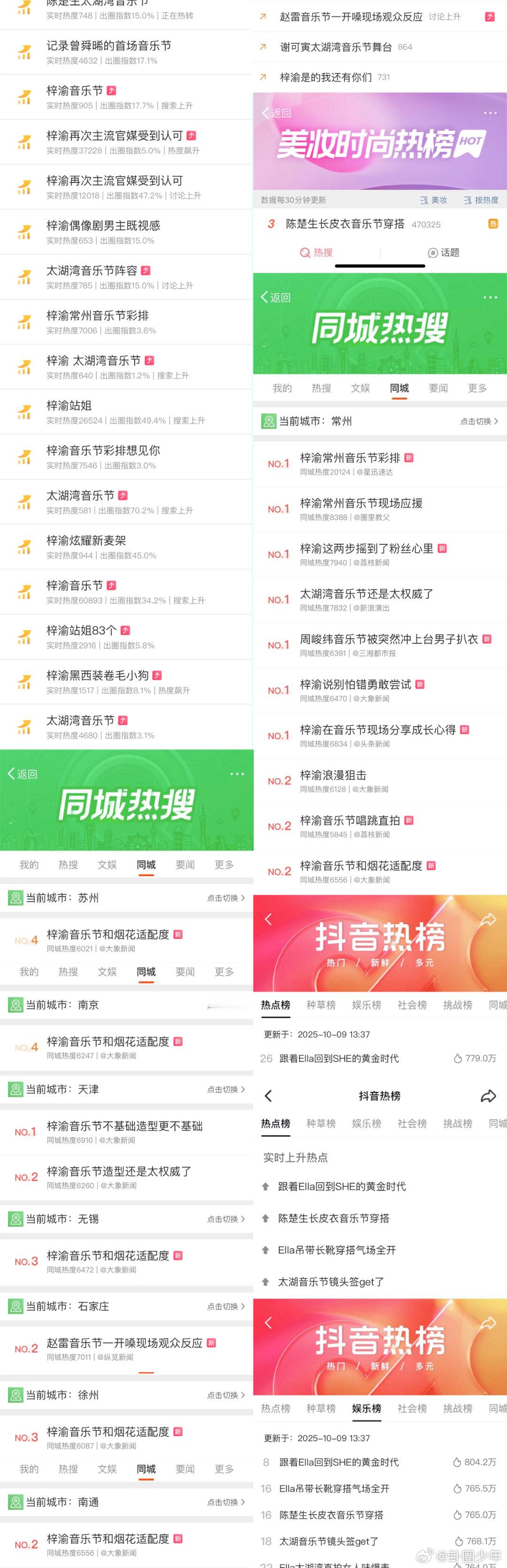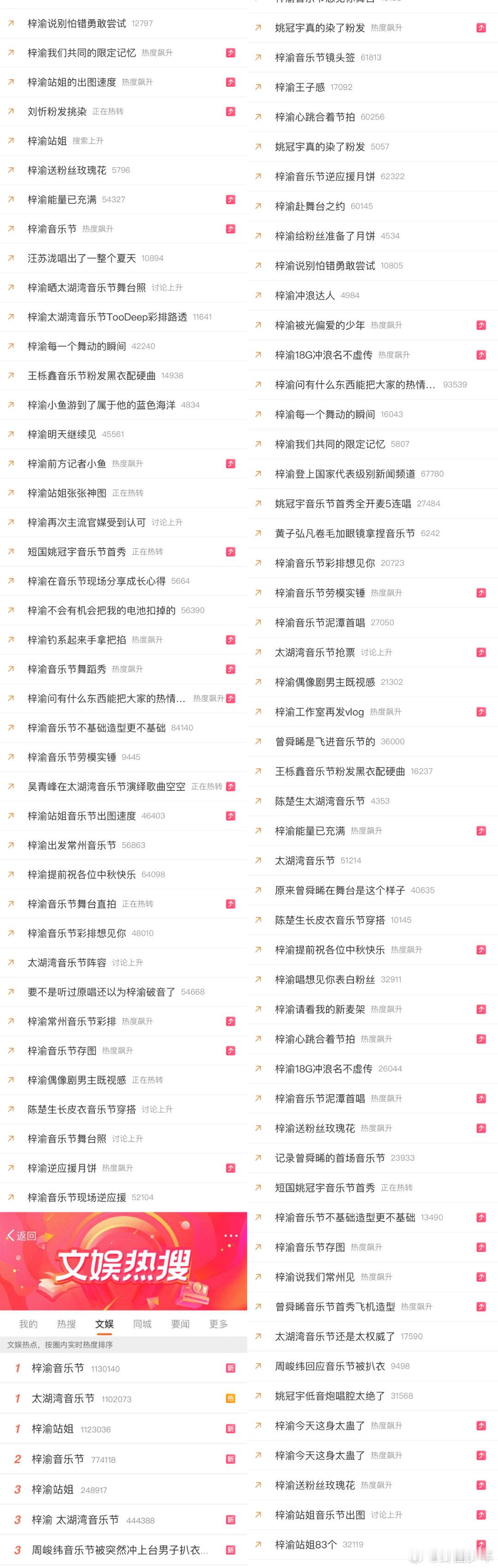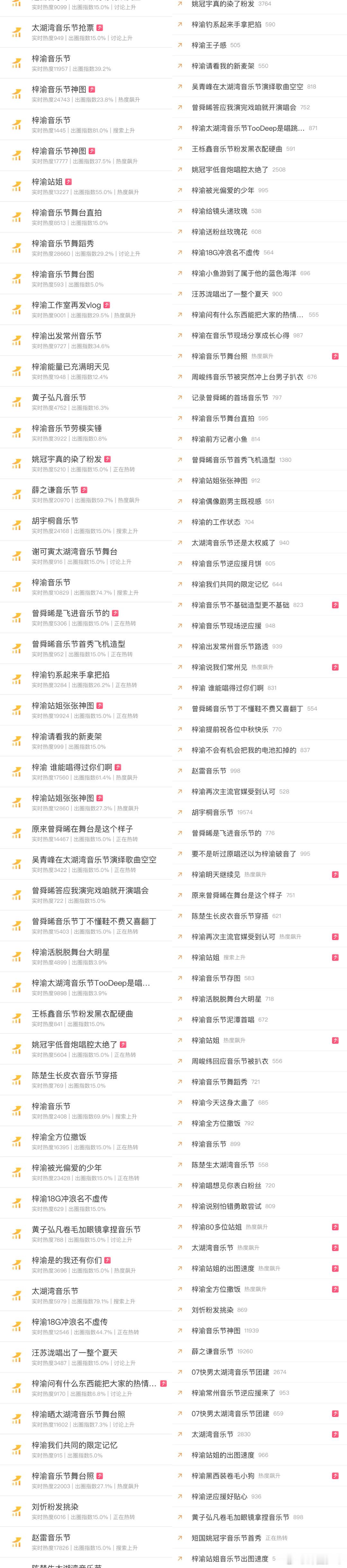 太湖湾音乐节收官战报好多梓渝 谁看了战报不说一句梓渝太顶!全网曝光栏里满屏都是他的名字,每一个词条都藏着爆棚的人气,这哪是普通的流量,分明是靠舞台感染力征服全场、自带热度体质,妥妥的音乐节焦点人物!