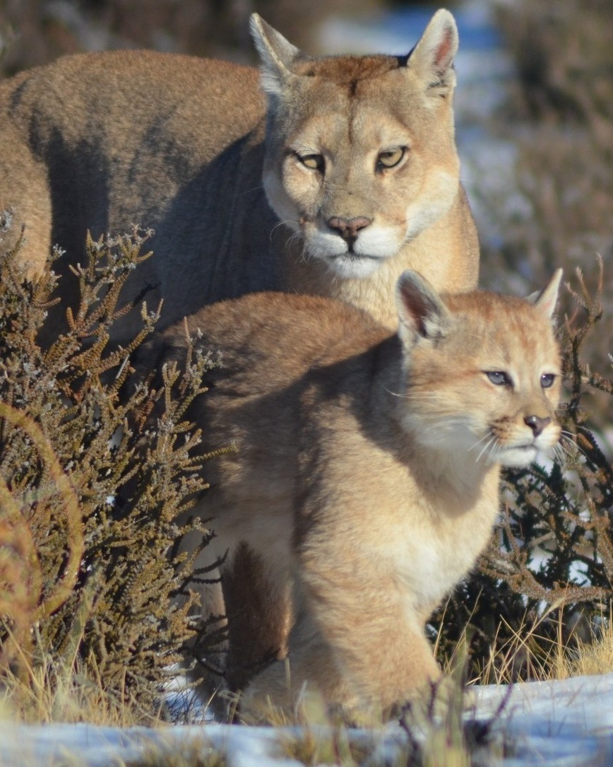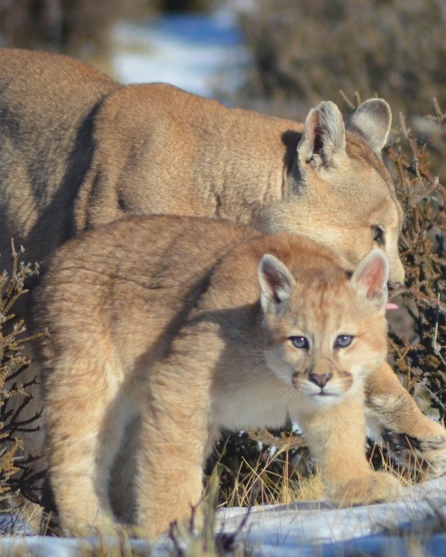 寒冷地带的美洲狮妈妈和宝宝实在是太可爱了[期待][期待][期待]