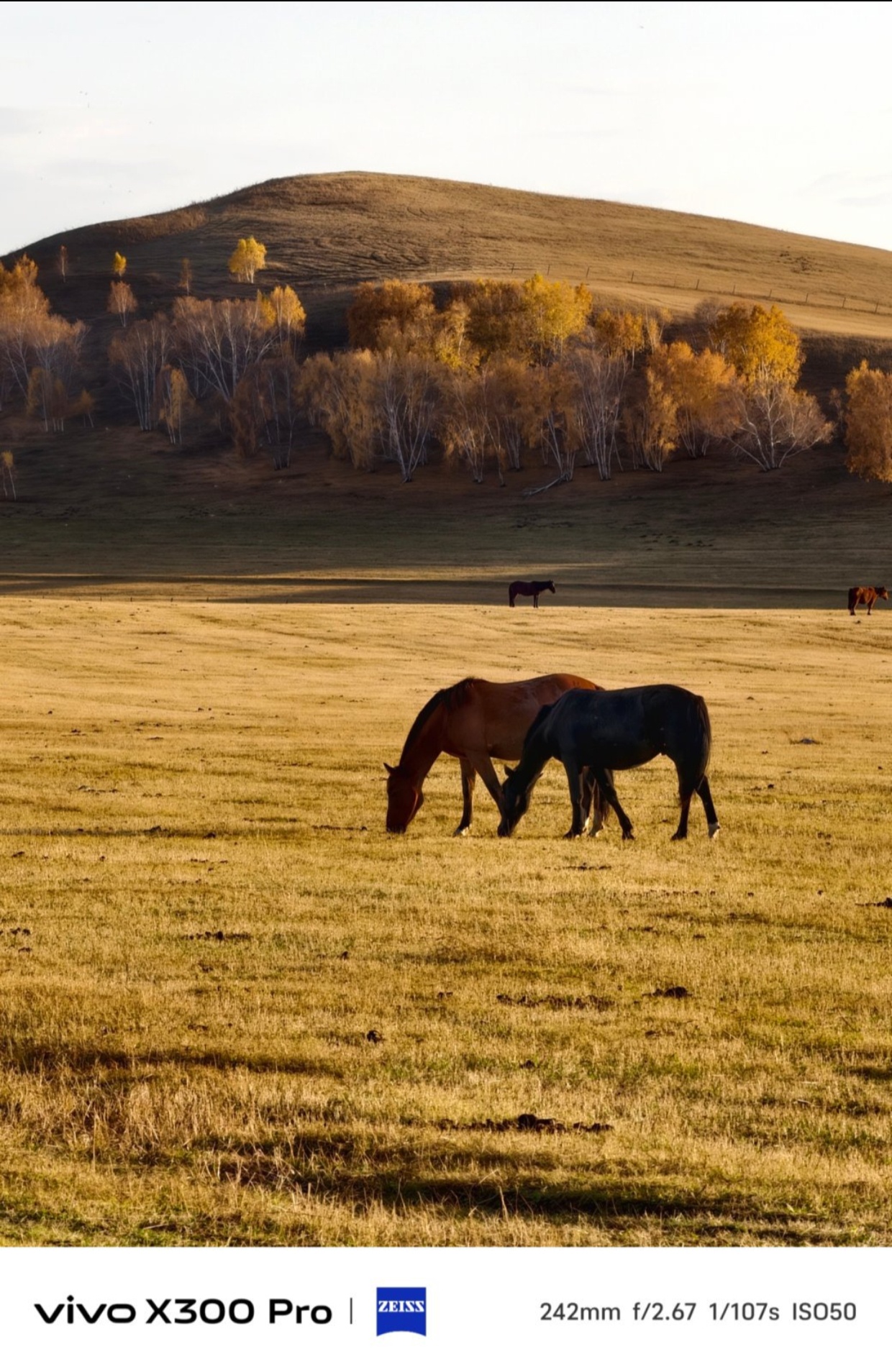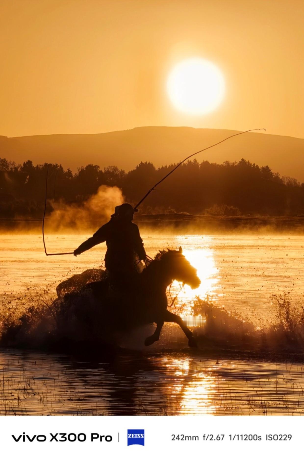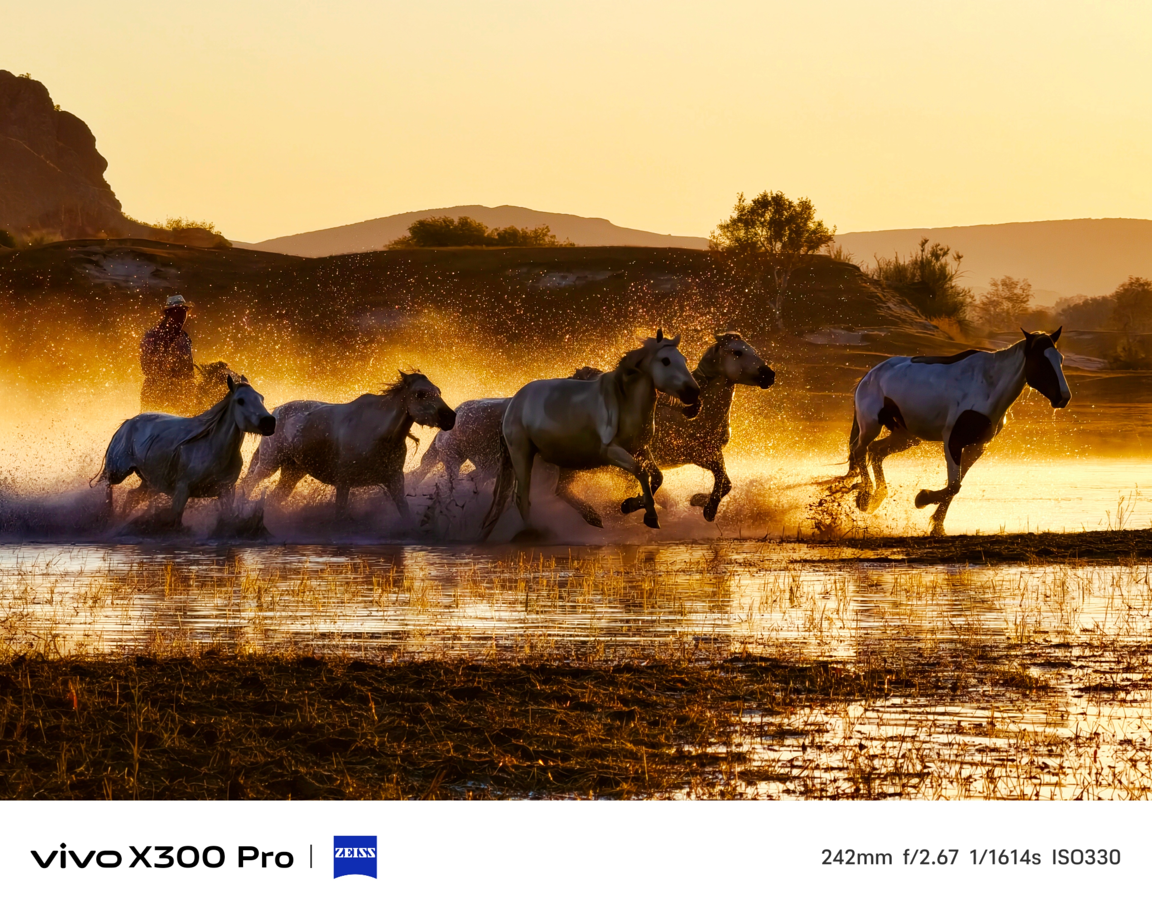 vivo X300 Pro的蔡司2亿APO超级长焦,更是经典之中更上一层楼,长焦能力超进化!不管是演唱会拍爱豆和人像特写,还是像这样的草原风光,连马儿在晨光里踏水狂奔,每滴飞溅的水珠都看得清!各种场景都能完美hold住,而且成片真实感拉满,再也不用担心数码感和滤镜感影响回忆。
