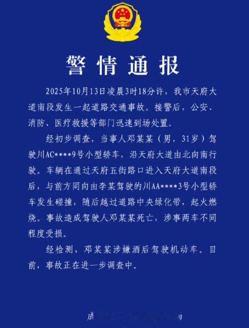 13号凌晨天府大道发生惨烈车祸,一辆小米SU7像失控的子弹般撞上绿化带,翻滚着