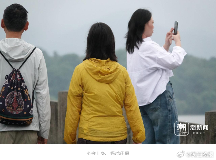 凉风习习的西湖边也换上了一副“秋天”的面孔。北山路上,骑车市民穿上了防风外套。