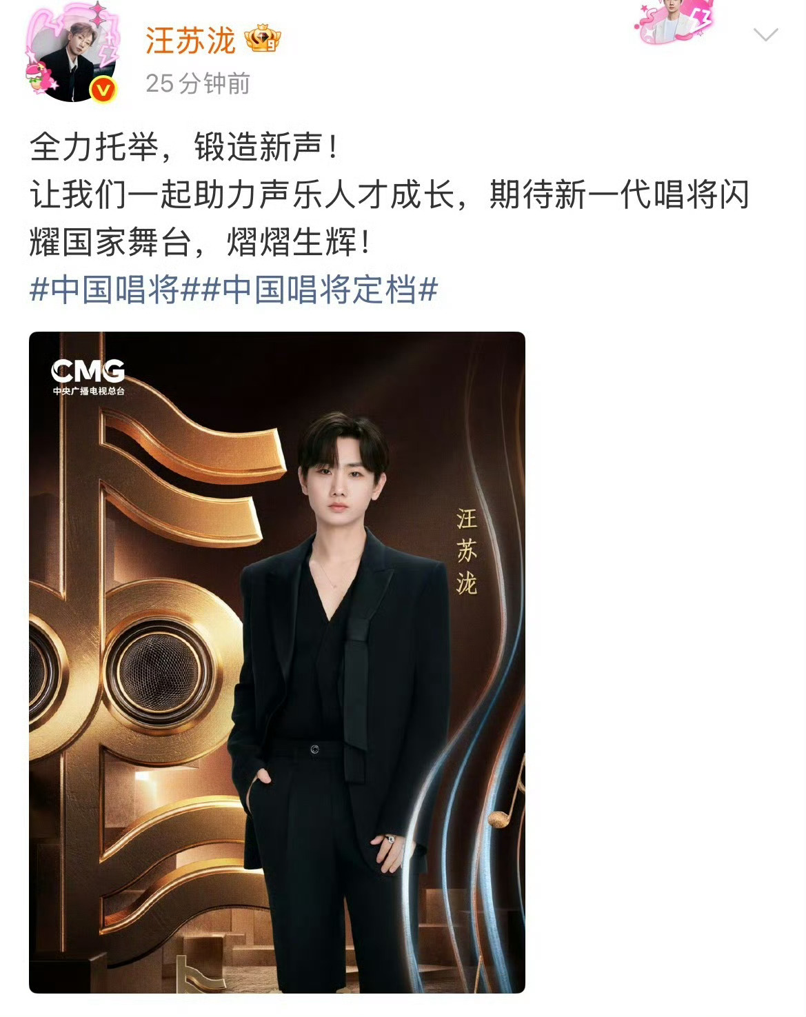 汪苏泷加盟中国唱将中国唱将官宣汪苏泷