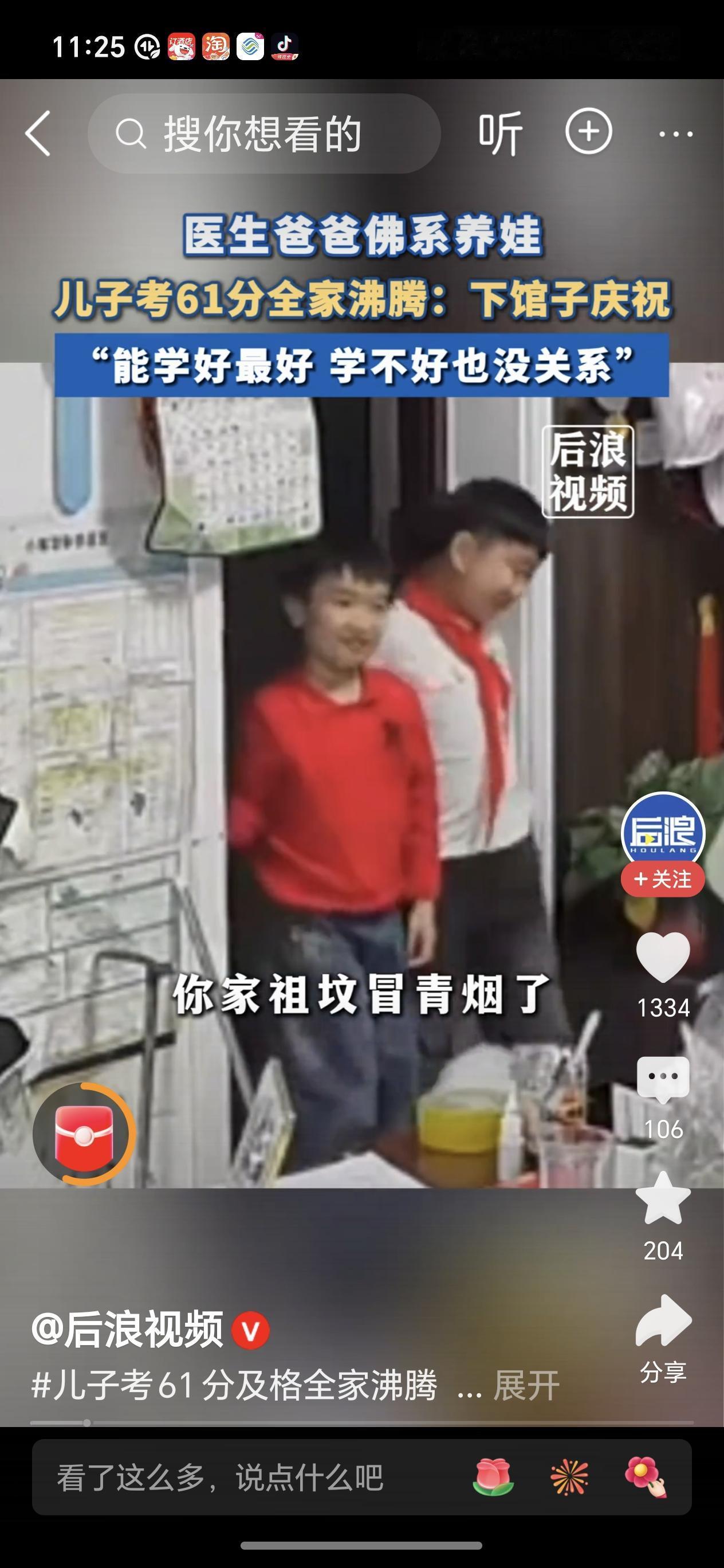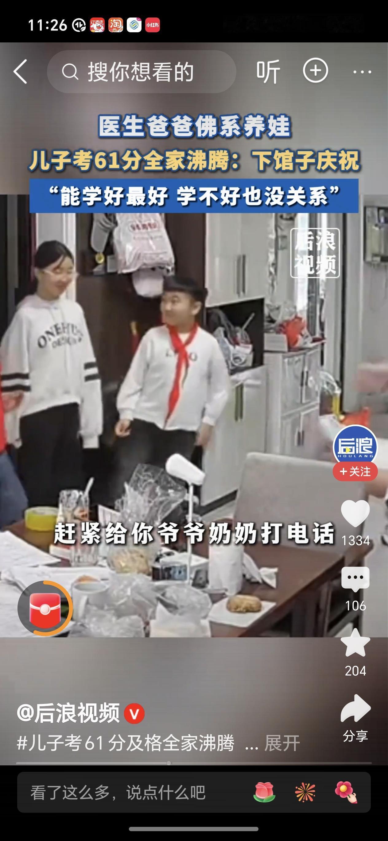 你更看重孩子成绩还是健康快乐 安徽亳州这位儿科医生爸爸,因儿子数学考61分终于及格,兴奋地带全家下馆子庆祝,这事儿在网上引发了不同看法。有人觉得在“鸡娃”盛行的当下,他不被“分数至上”裹挟,看到孩子努力,值得称赞;也有人担心会让孩子觉得及格就够了,失去前进动力。 其实医生爸爸育儿佛系,是因为在医院见多了不幸,更注重孩子个性培养,觉得孩子潜能无限。他儿子平时成绩不好,这次及格全家都高兴。我觉得成绩重要,但孩子健康快乐成长更重要,偶尔跳出“分数焦虑”,肯定孩子努力也非常不错。