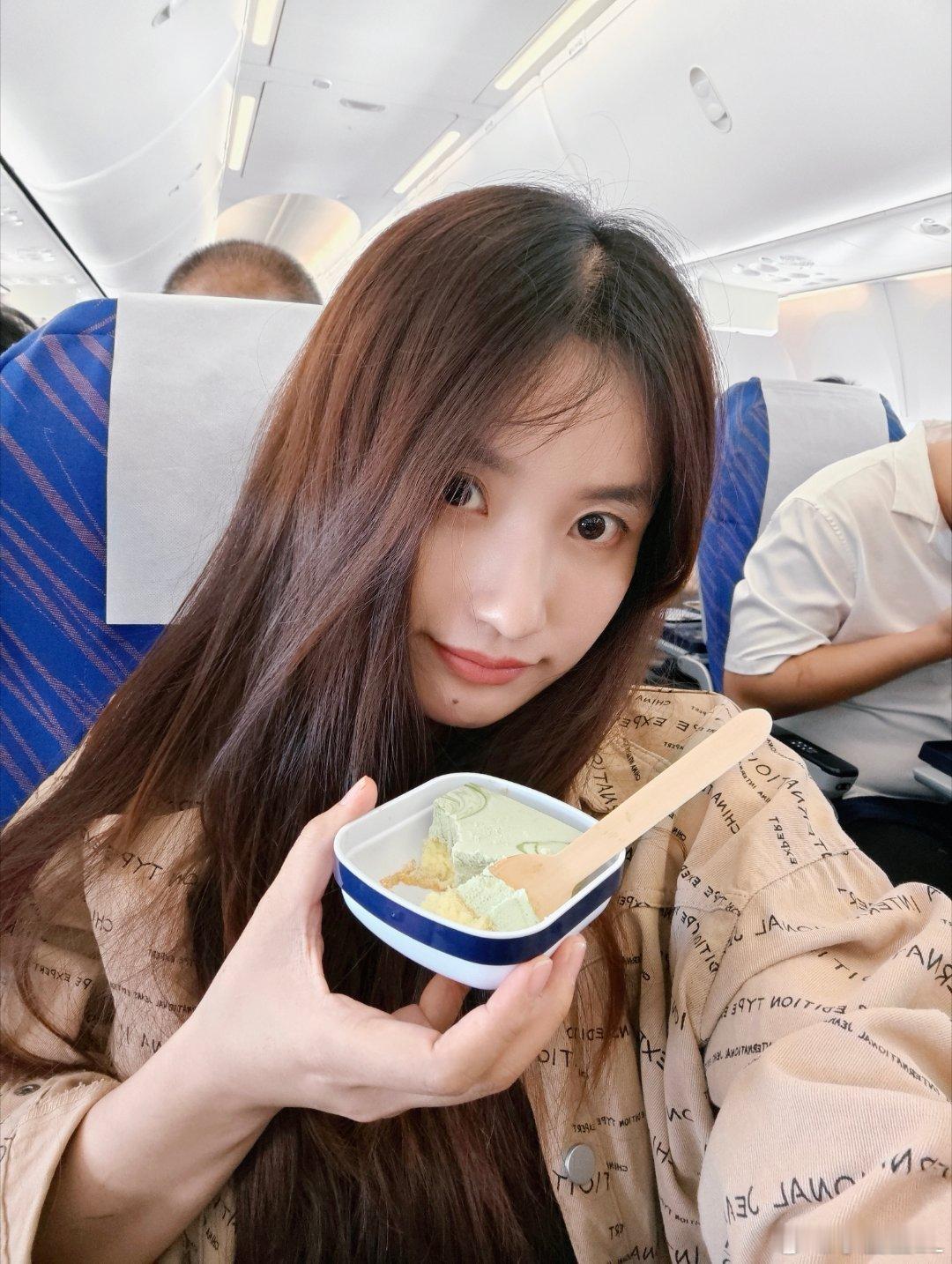 今天中午吃了两顿饭!!飞机餐这个抹茶蛋糕还挺好吃!