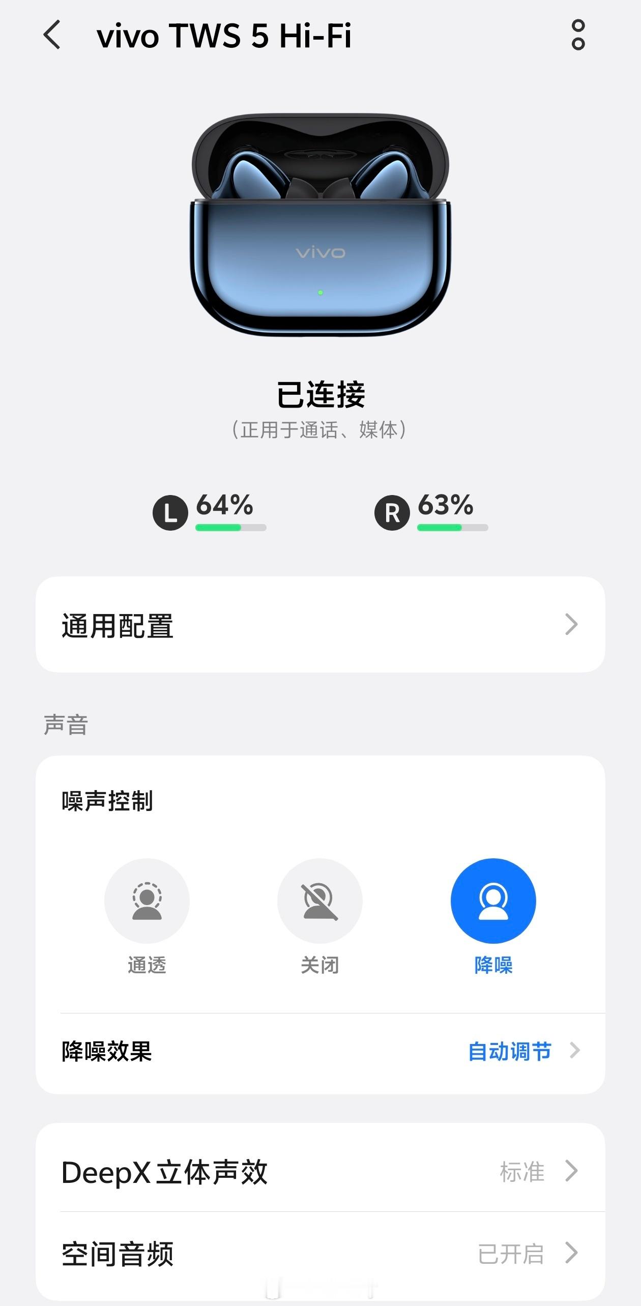 vivo TWS 5 今天我主要是跨城通勤佩戴,降噪表现确实好,飞机上佩好耳机瞬间安静,仿佛回到了工作室,60dB深海智慧降噪识别环境音,追剧听歌都能很沉浸。