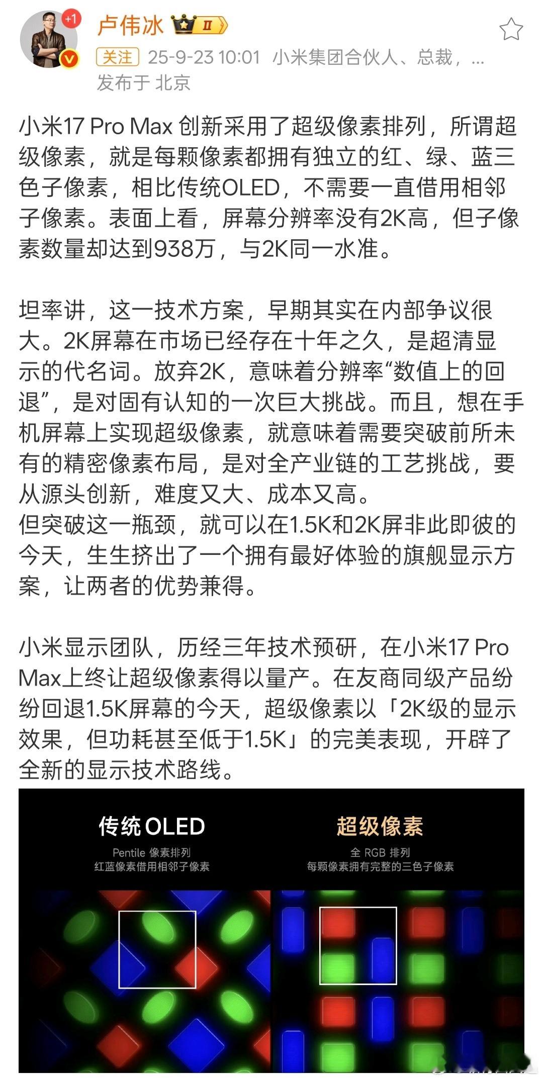 媲美2K,终究不是真2K,戈蓝老师这是在暗指小米17 Pro Max的超级像素吗[思考]