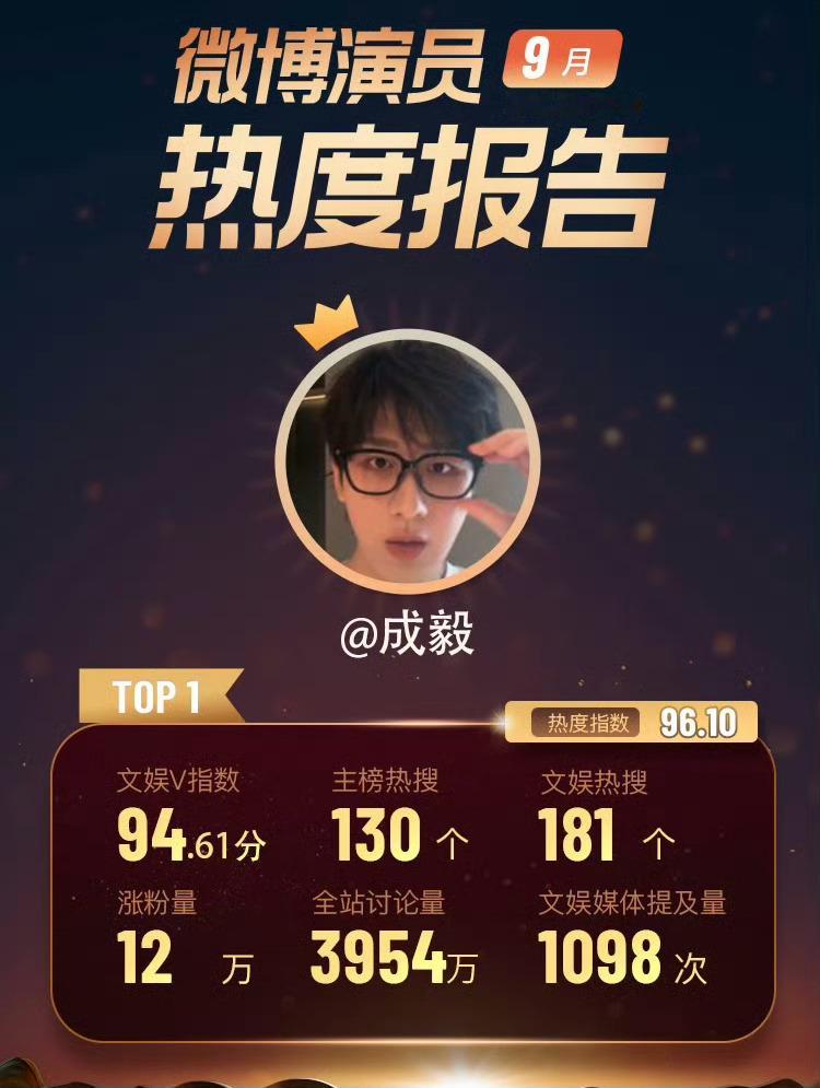 成毅九月份在微博的热度第一,因为《赴山海》开播吧?[思考][思考][思考]成毅9月微博演员热度TOP1