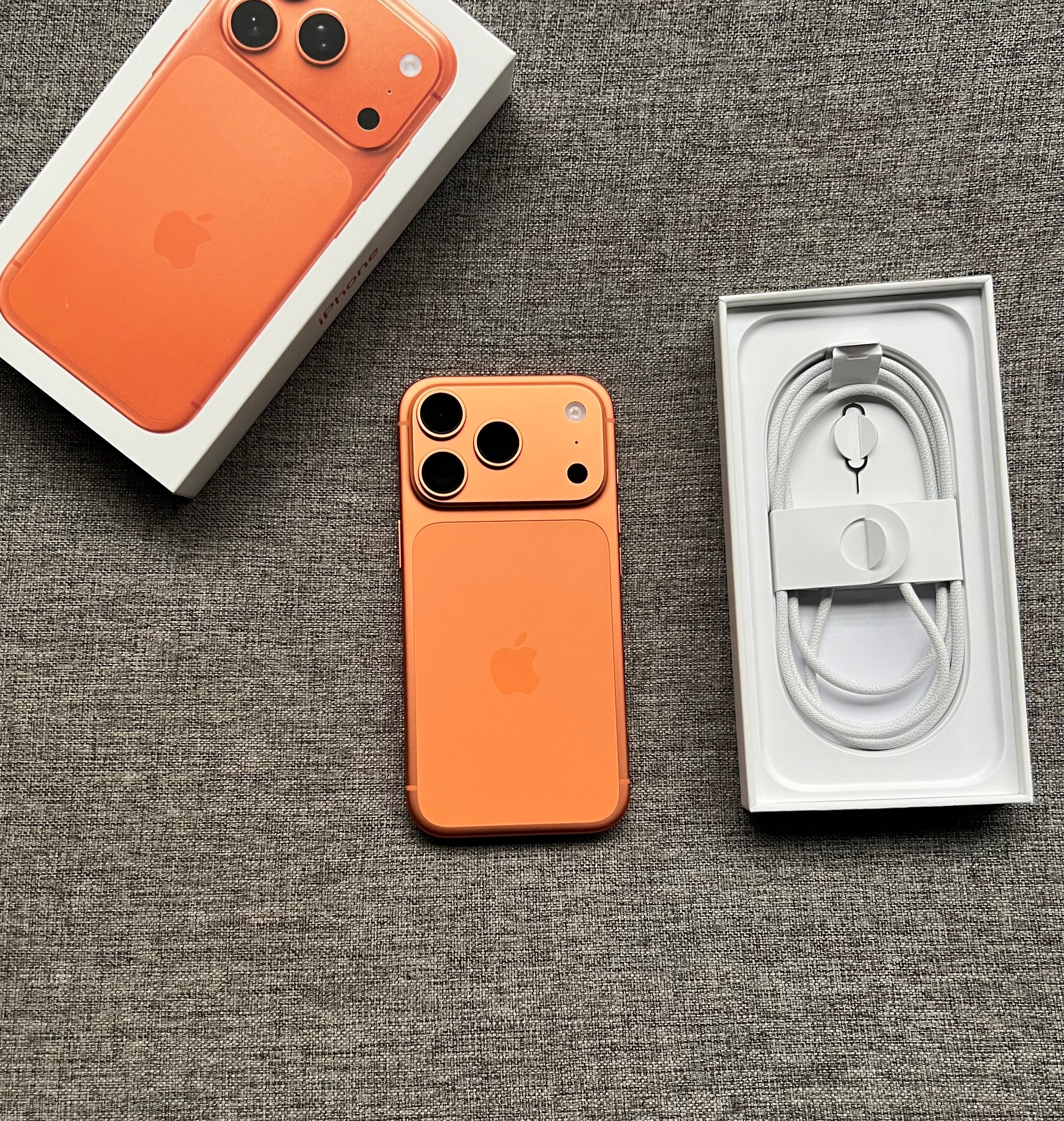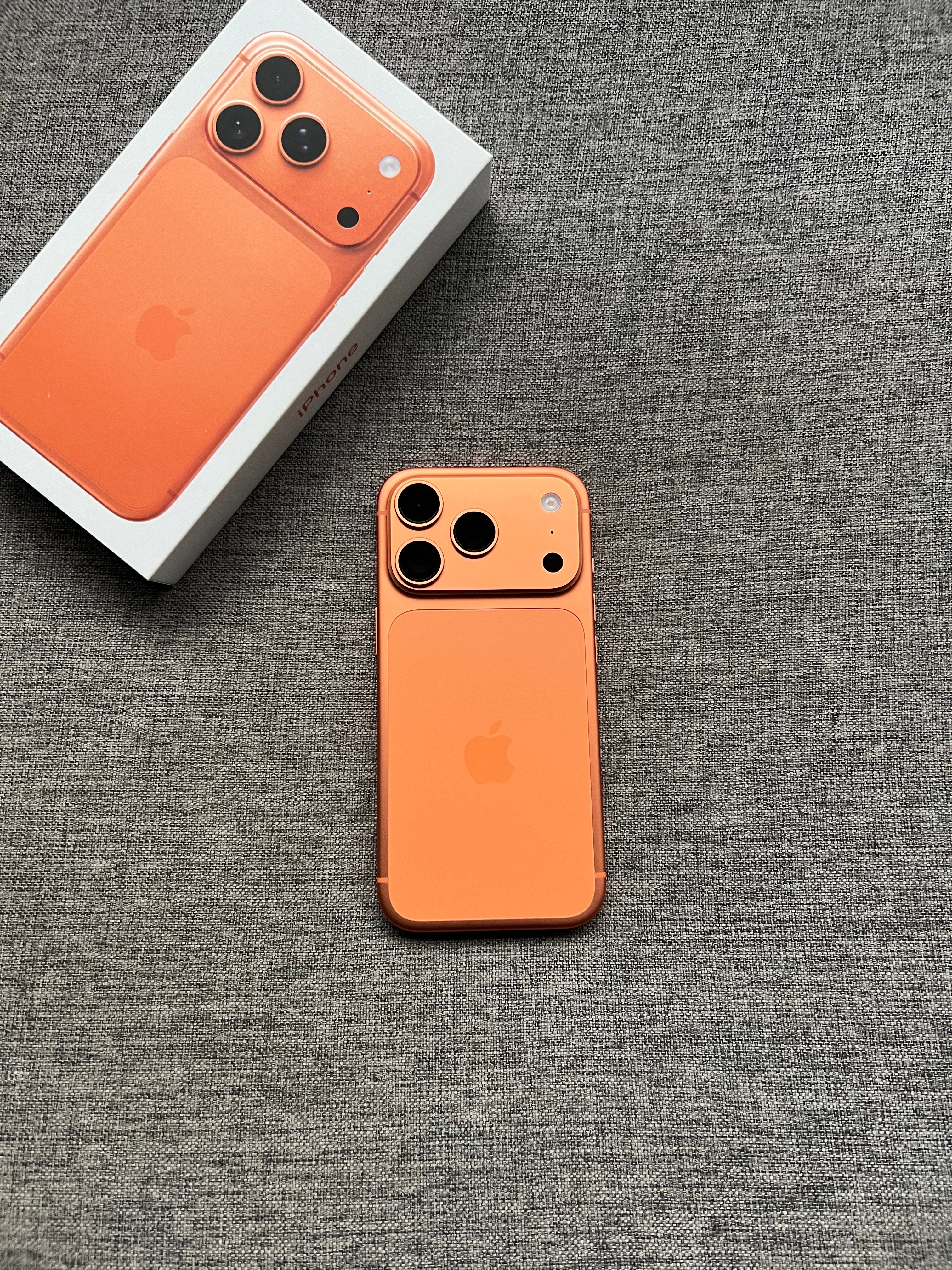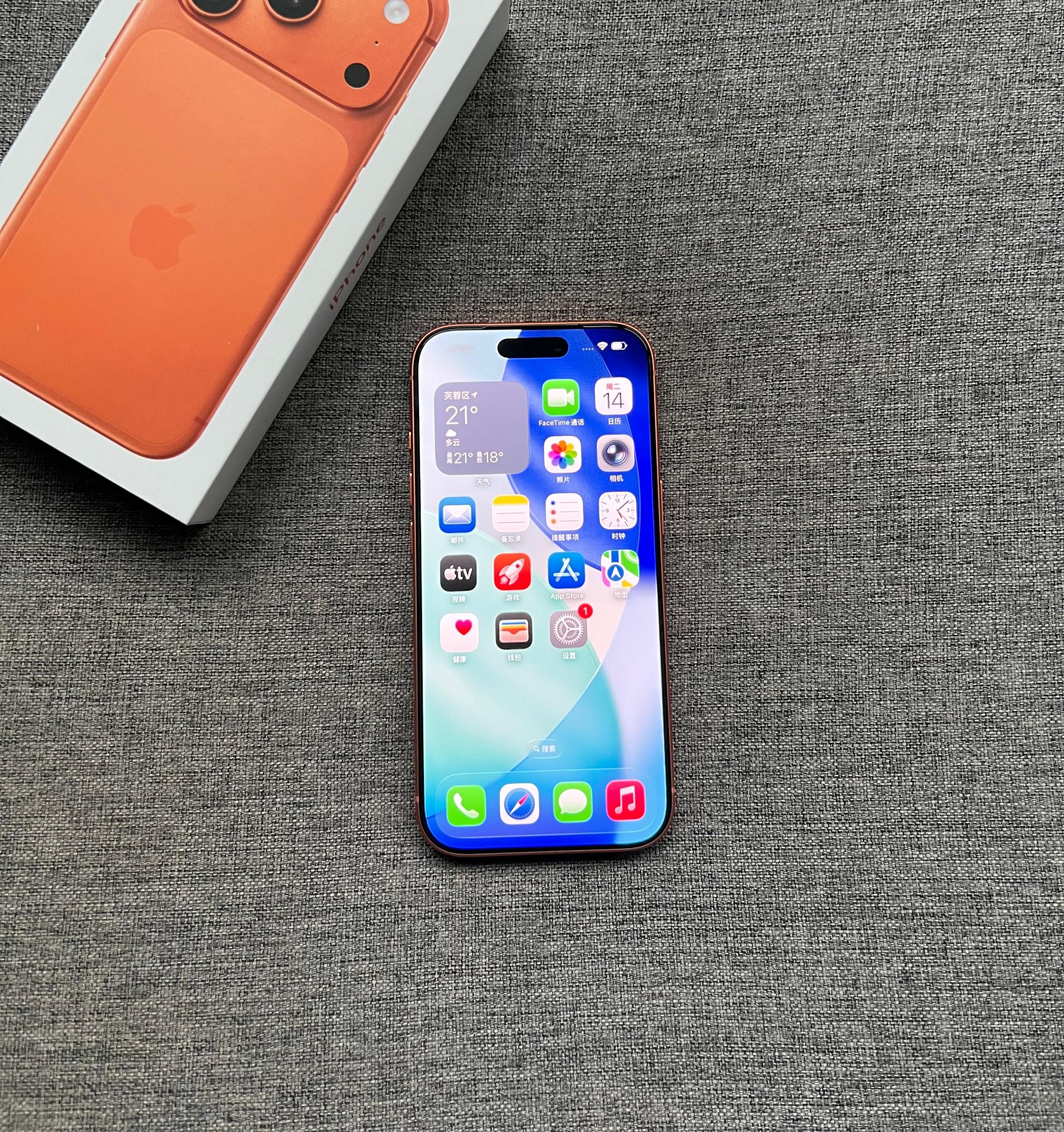 iPhone17 Pro 256G 橙色,成色完美,全套带票,电池循环18次,效率100,全国联保至2026-09-18,8499。