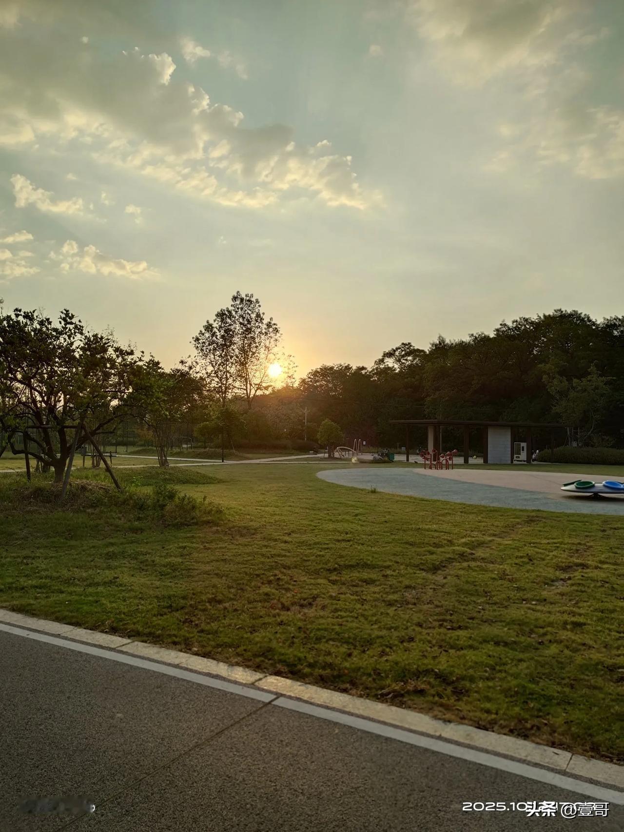 。天空渐渐蒙上一层淡淡的金纱,随后被夕阳染成层次分明的红色,云彩也变得五彩缤纷,如绚丽的锦缎 。 公园附近的江面在夕阳映照下波光粼粼,被染成橘黄色或粉色,宛如油画 。此时,若有大雁飞过,或鸟儿归巢,更增添了一份自然的生机与诗意 。