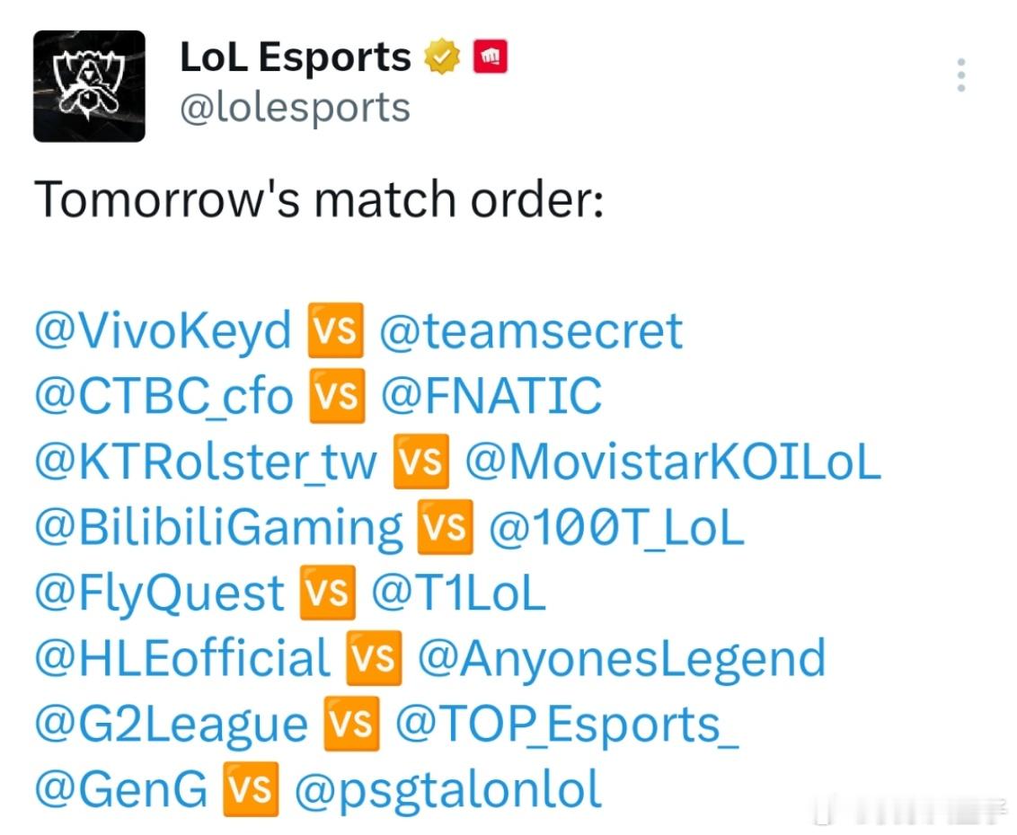 AL打HLE Al打HLE这场将是瑞士轮首日重头戏,官方安排在第六场黄金档开打,估计晚上六点左右就要开始等候观战了。s15瑞士轮首日比赛顺序s15抽签AL你我皆传奇[超话]