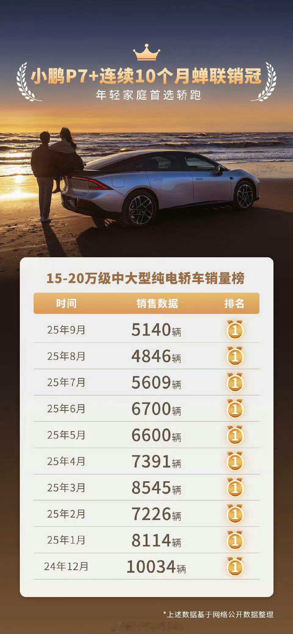 还连续10个月成为15-20万级中大型纯电轿车销冠。