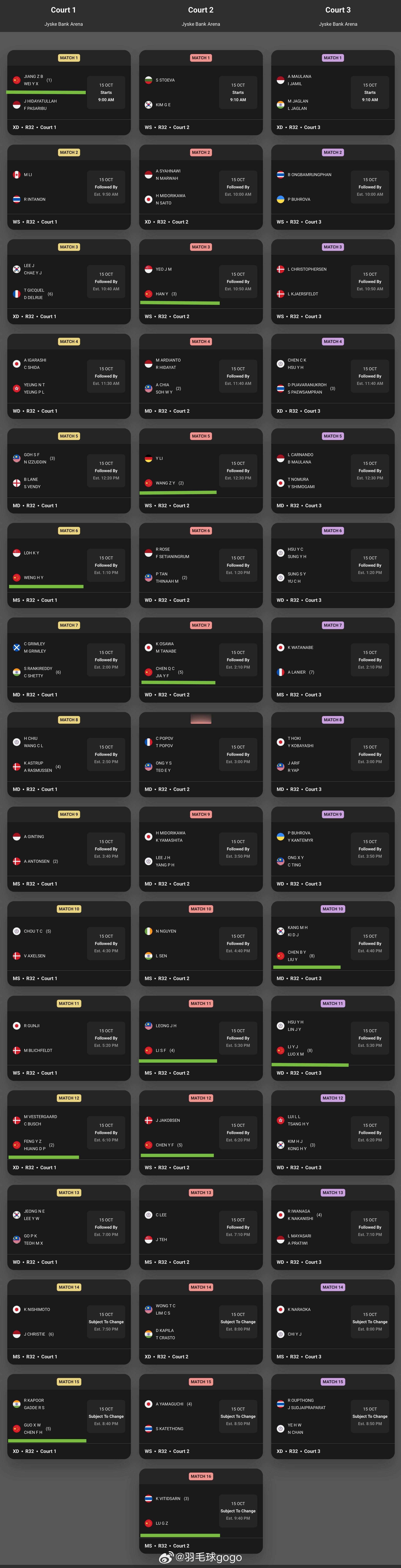 2025年丹麦羽毛球公开赛 10月15日国羽赛程