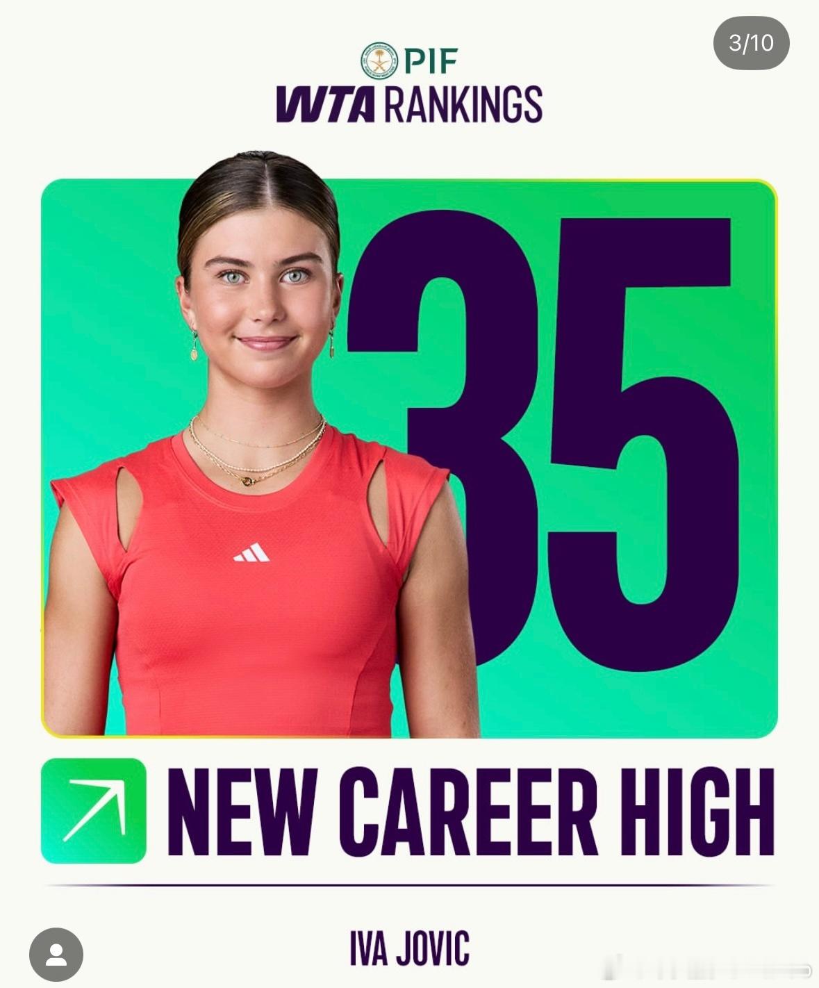 同时在本周,Iva继续刷新职业生涯单打排名新高,来到了WTA No.35🔥wta[超话]