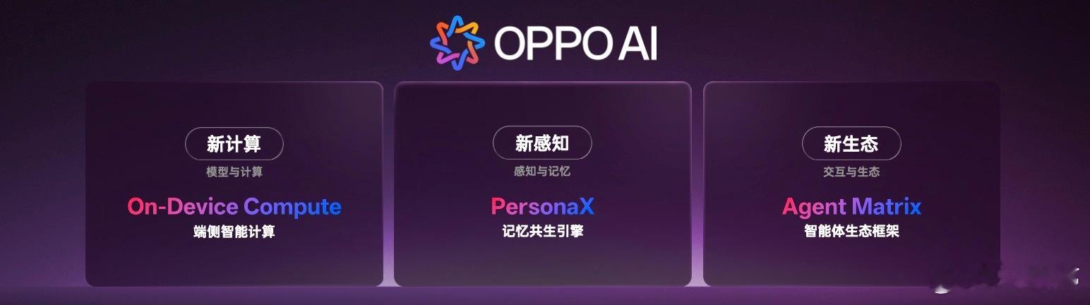 此外,OPPO AI 发布新战略:新计算,新感知,新生态。基于On - Device Compute端侧智能计算、PersonaX记忆共生引擎、Agent Matrix智能体生态框架的三大技术基座,OPPO AI将带来与你共生的智慧系统,引领个人化AIOS!OPPO开发者大会ColorOS16