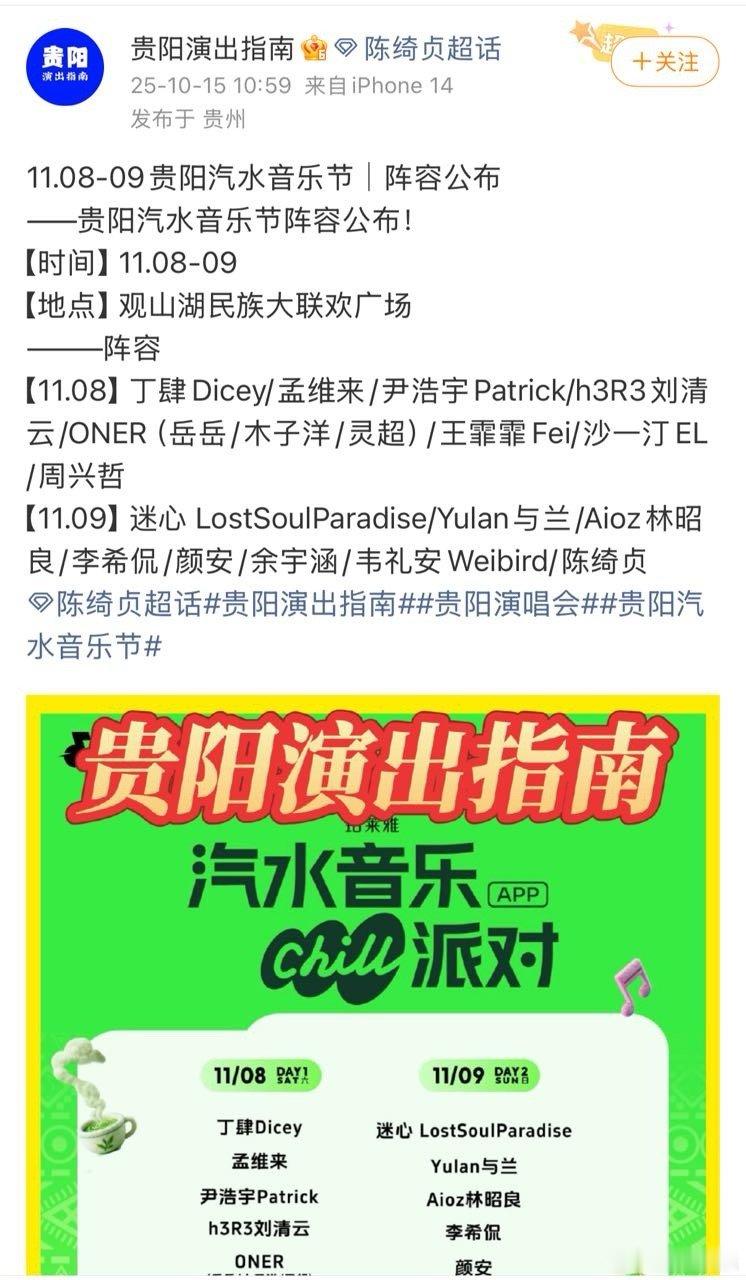 余宇涵官宣贵阳音乐节🐟余宇涵贵阳音乐节 速来集合!汽水音乐chill派对贵阳站正式官宣,余宇涵确认加盟啦!就等这位舞台王者带来《Starlight》般的高光时刻了,期待值拉满!