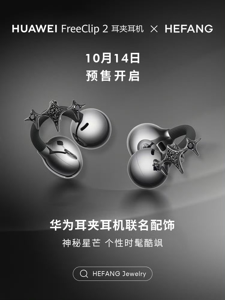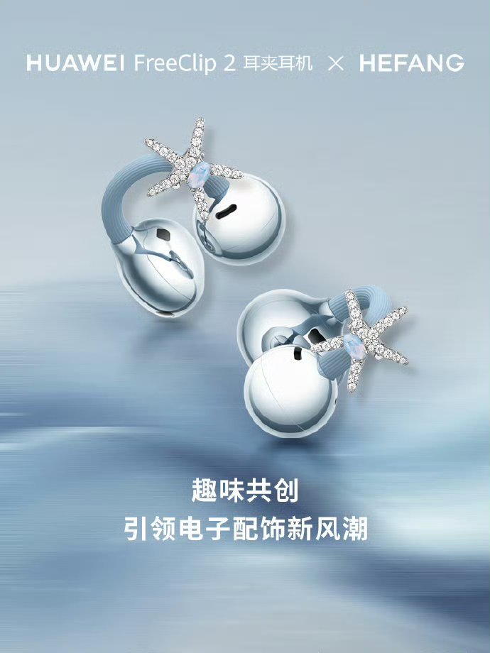 华为耳夹何方联名配饰开启预售华为与轻奢珠宝品牌HEFANG(何方)推出三款磁吸式