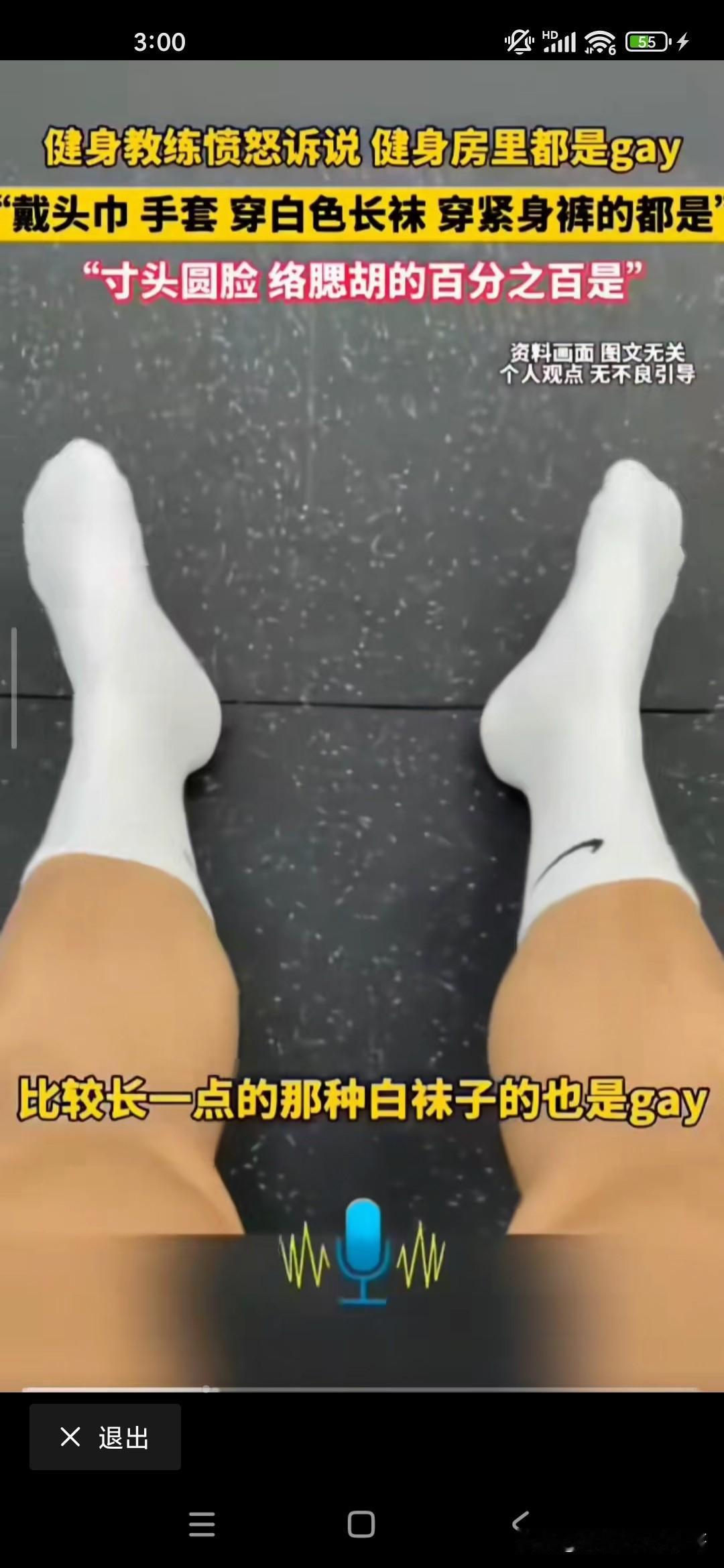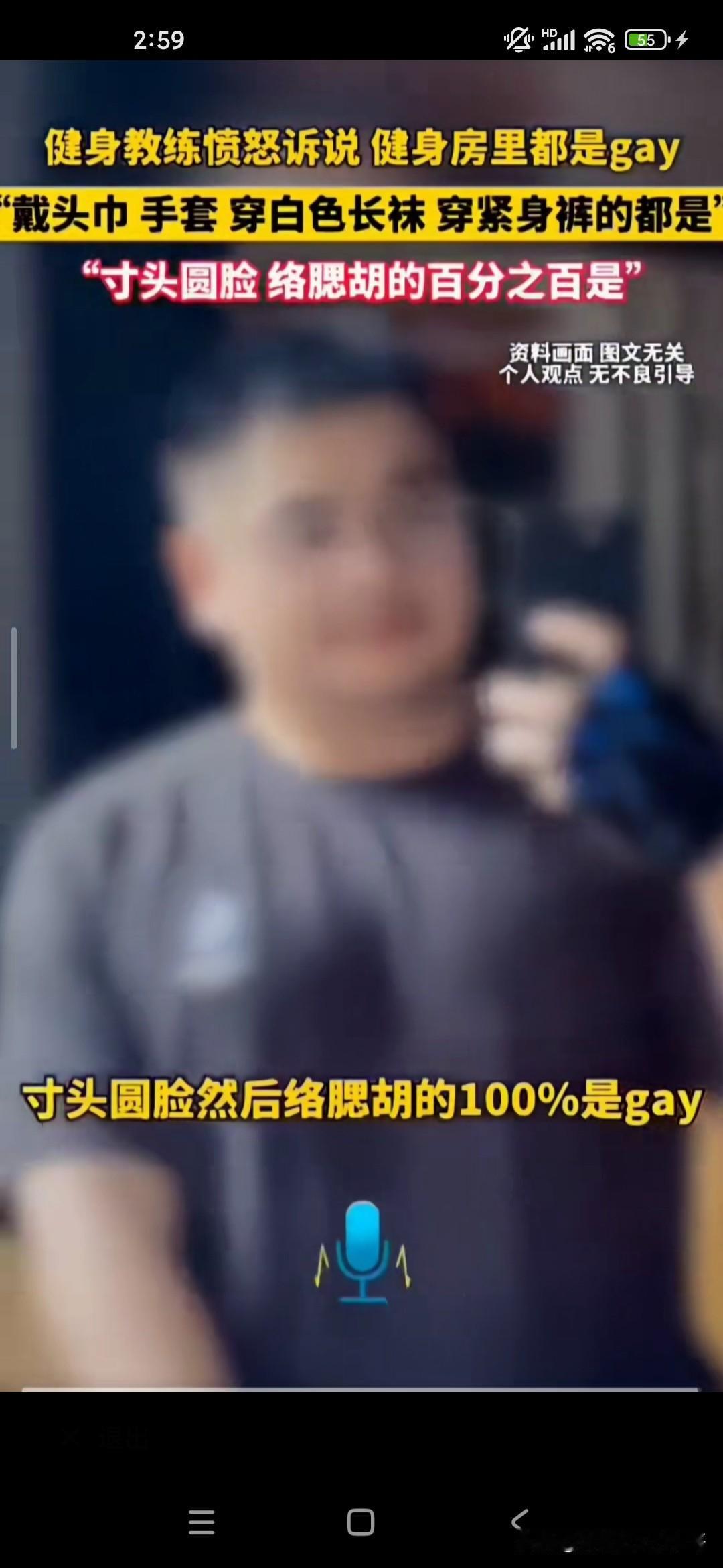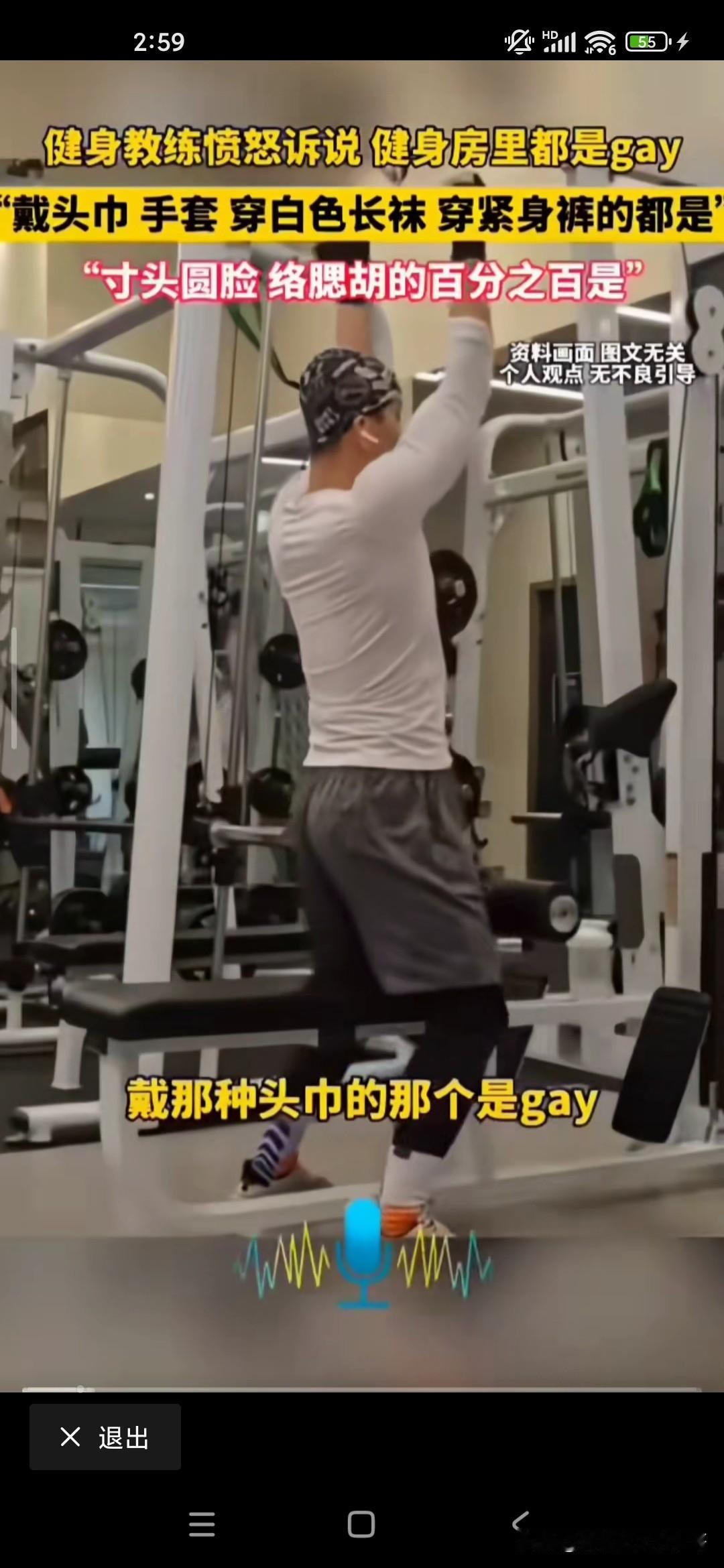 想不到健身房里边儿有这么多的gay,gay也就是同性恋的意思,因为在健身房里工作多年的教练,他说这个gay的话就是男同性恋的话有很多特征,第一是络腮胡子,寸头;第二的话是经常拿着相机对着自己的臀部不停的欣赏和自拍的;第三是喜欢穿紧身裤和瑜伽裤的;第四的话是袜子很长很白的;第六的话是拿着身身材很健硕,但是却拿着2.5kg的哑铃在那挥来挥去的;第七戴头巾的,戴头巾的;第八的话是带手套的,总而言之,他似乎看到健身房的很多都是gay,他都感觉到特别讨厌,也可能是同性排斥吧,我不知道你去健身房健身的时候有没有这样的感觉!