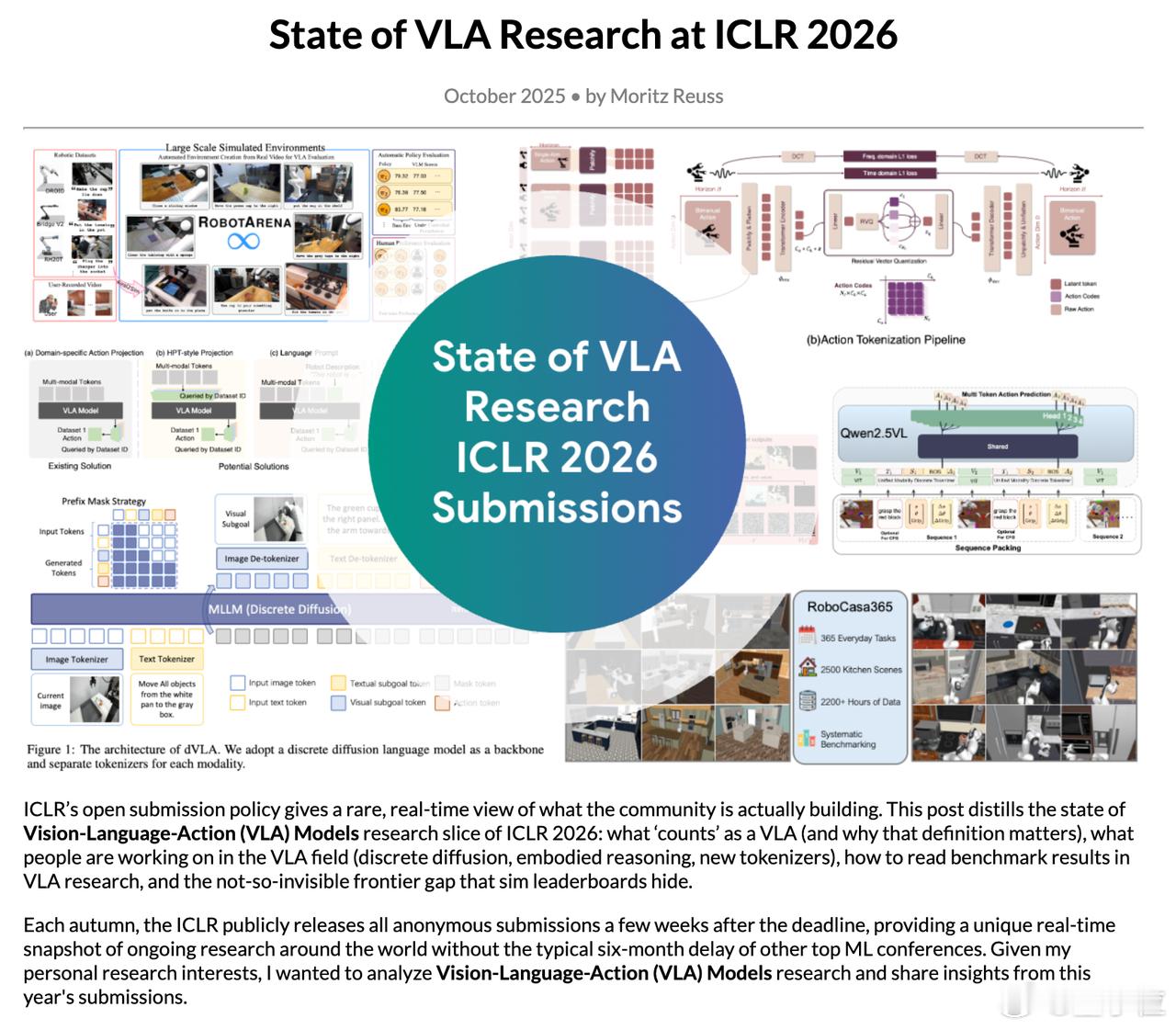 有人用实战的角度总结了这届ICLR上VLA方向的热点、趋势和挑战,适合对VLA方向感兴趣的人快速扫盲。(作者Moritz Reuss)