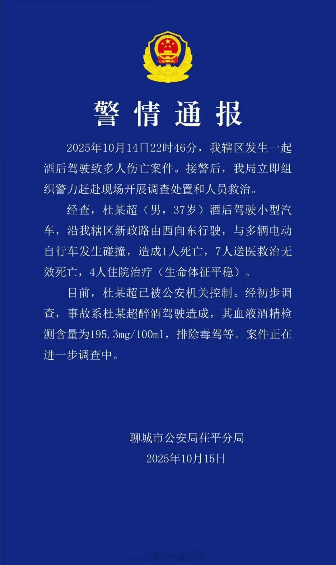 8死4伤[吃惊] 山东聊城一起酒驾致8人死亡