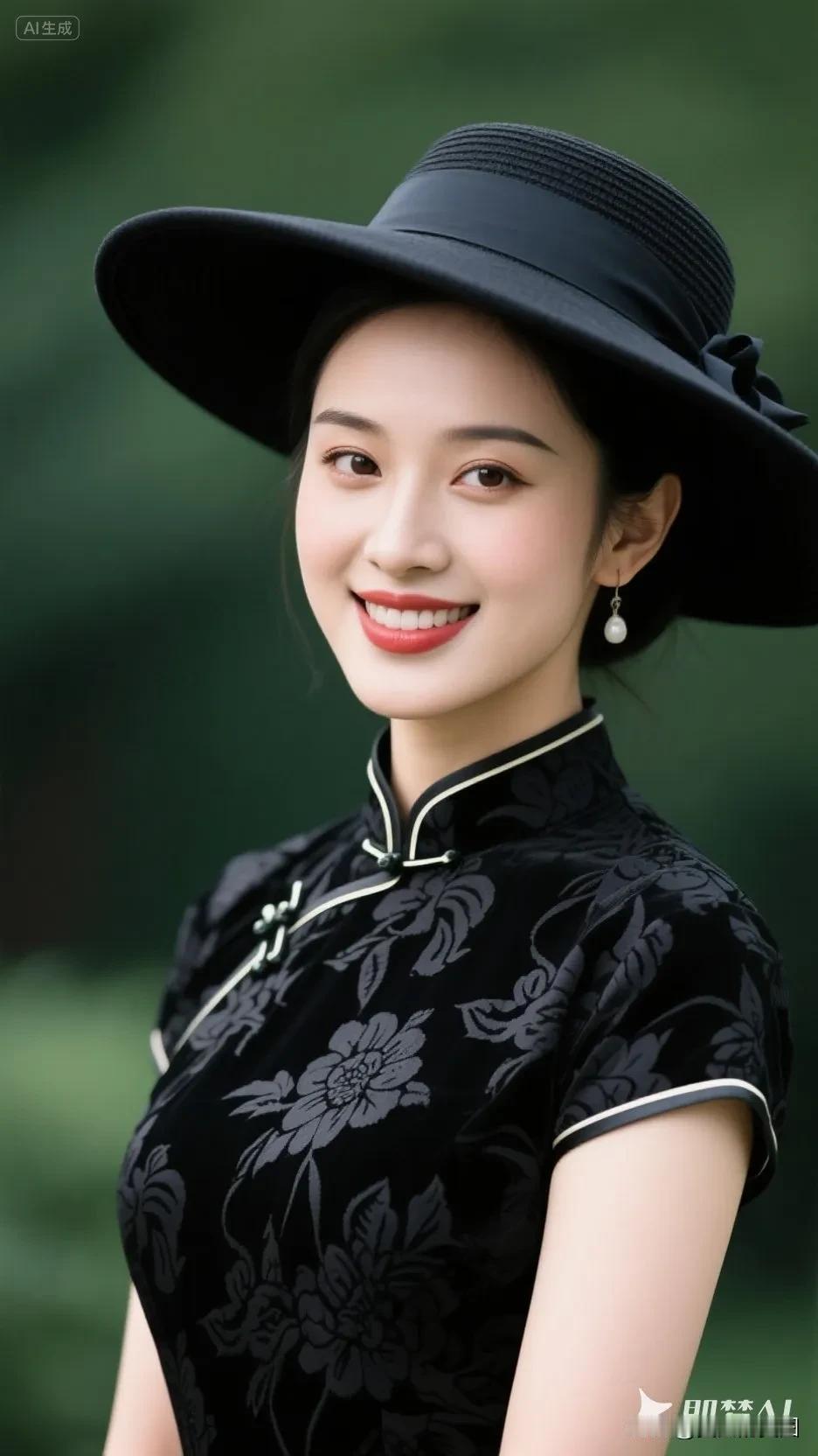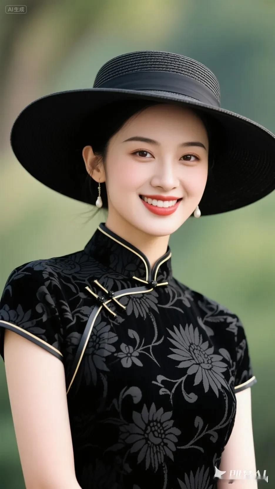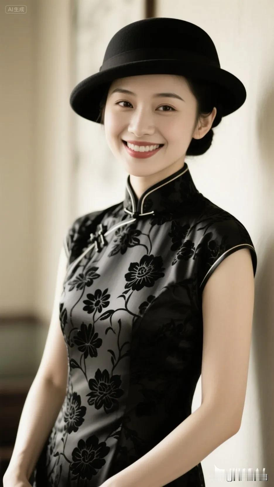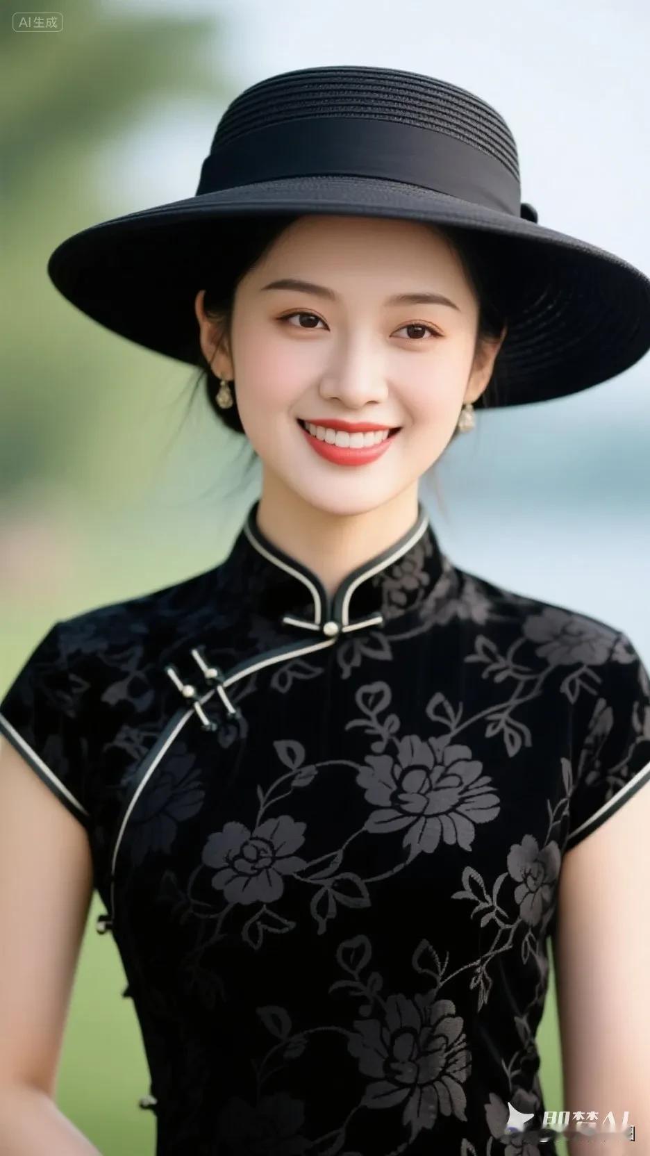 黄色帽子的旗袍美人,微笑美极了!