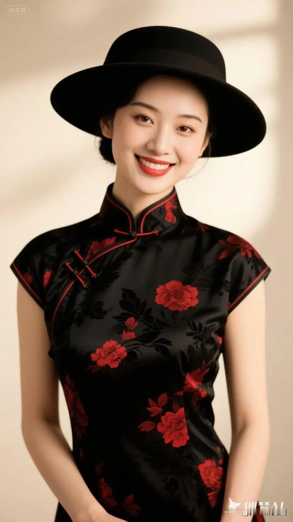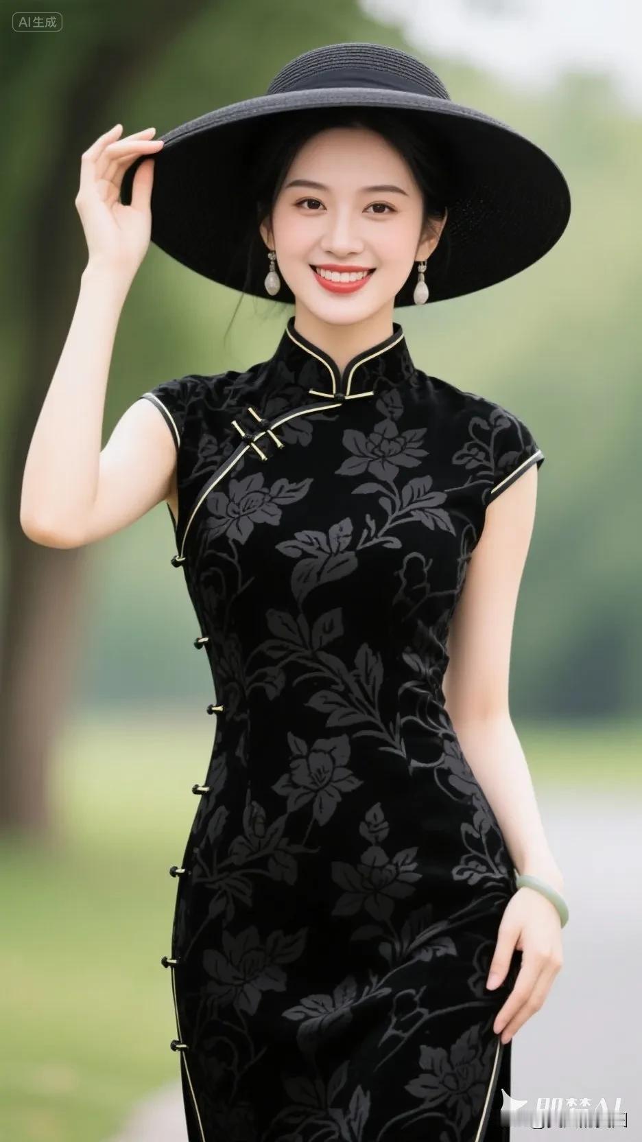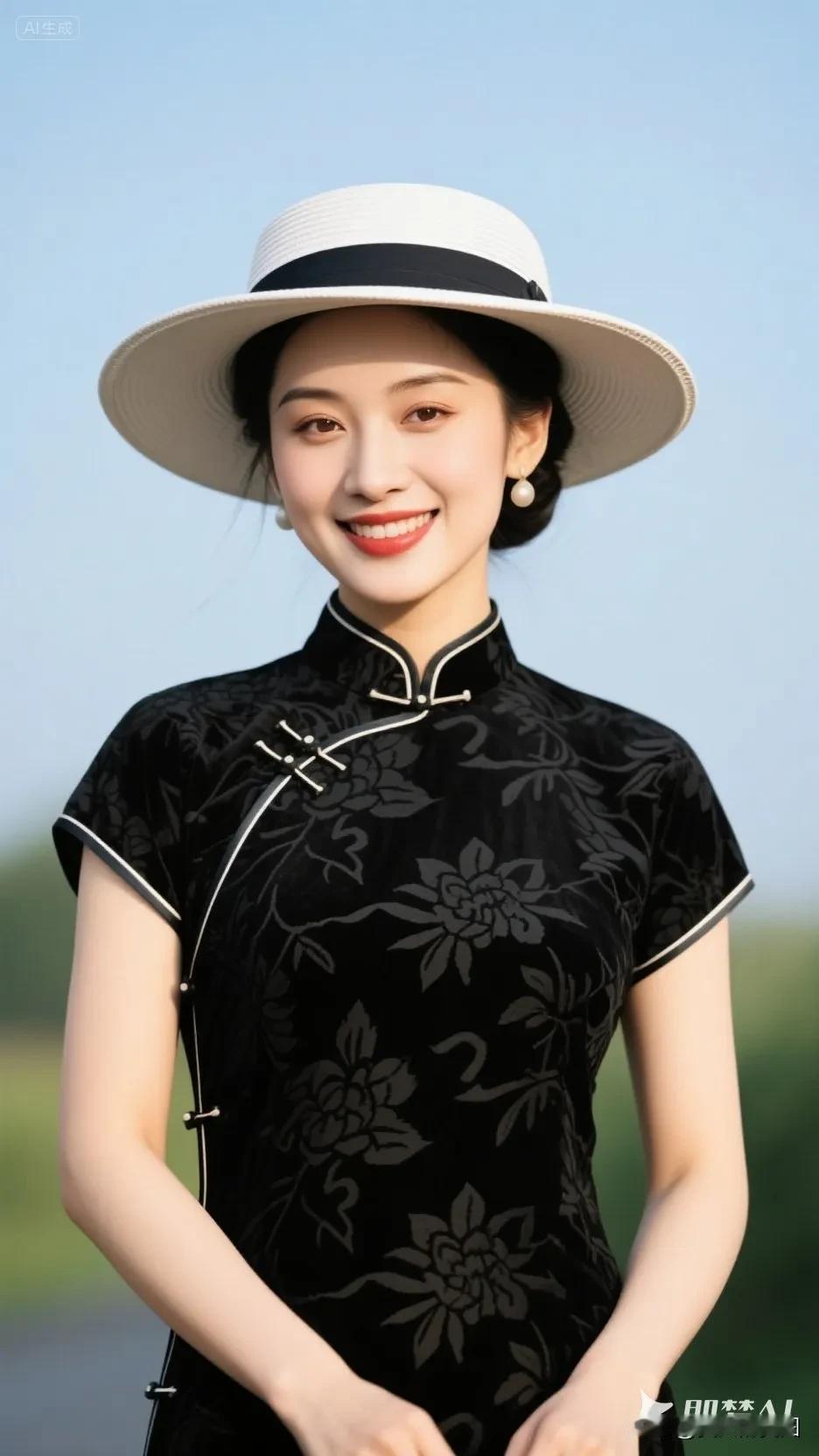 黄色帽子的旗袍美人,微笑美极了!