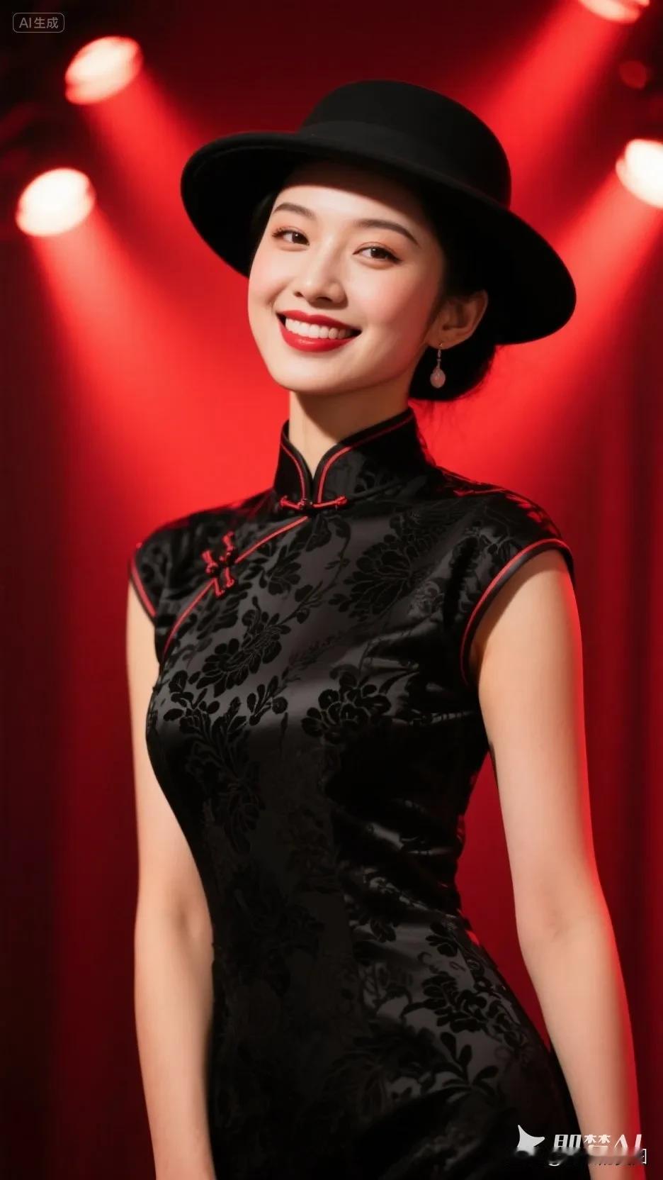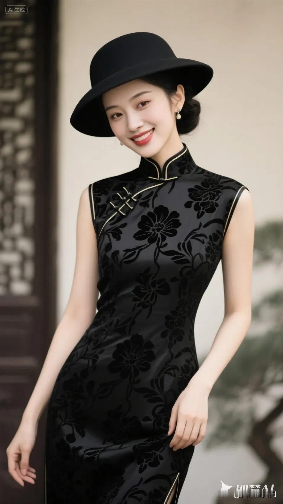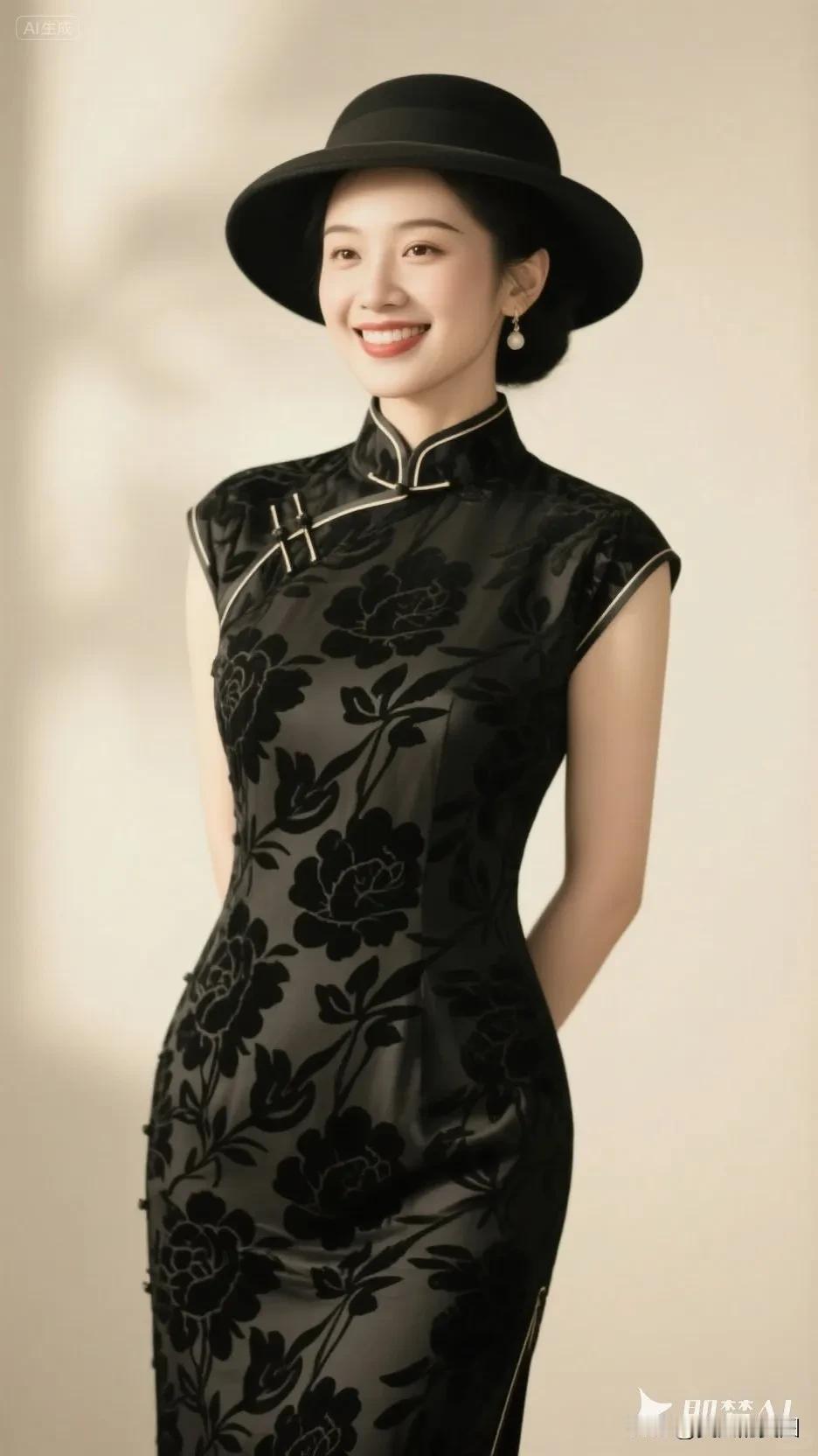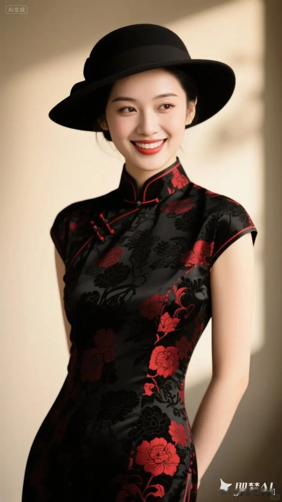 黄色帽子的旗袍美人,微笑美极了!