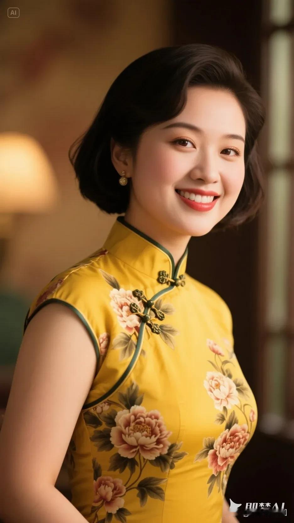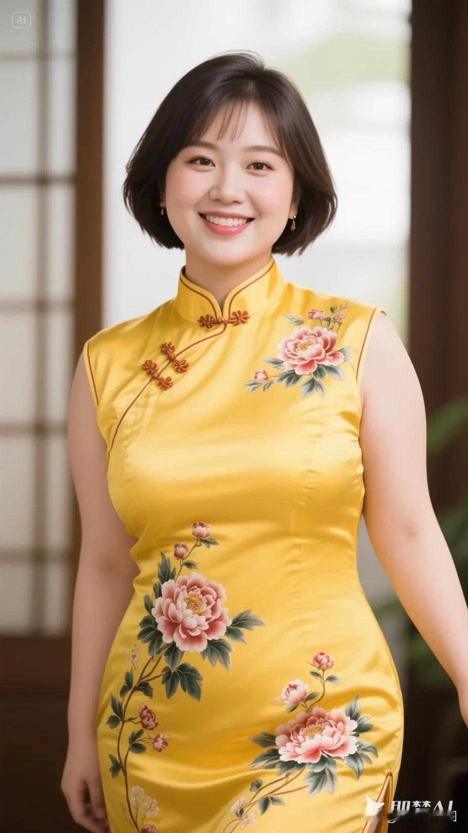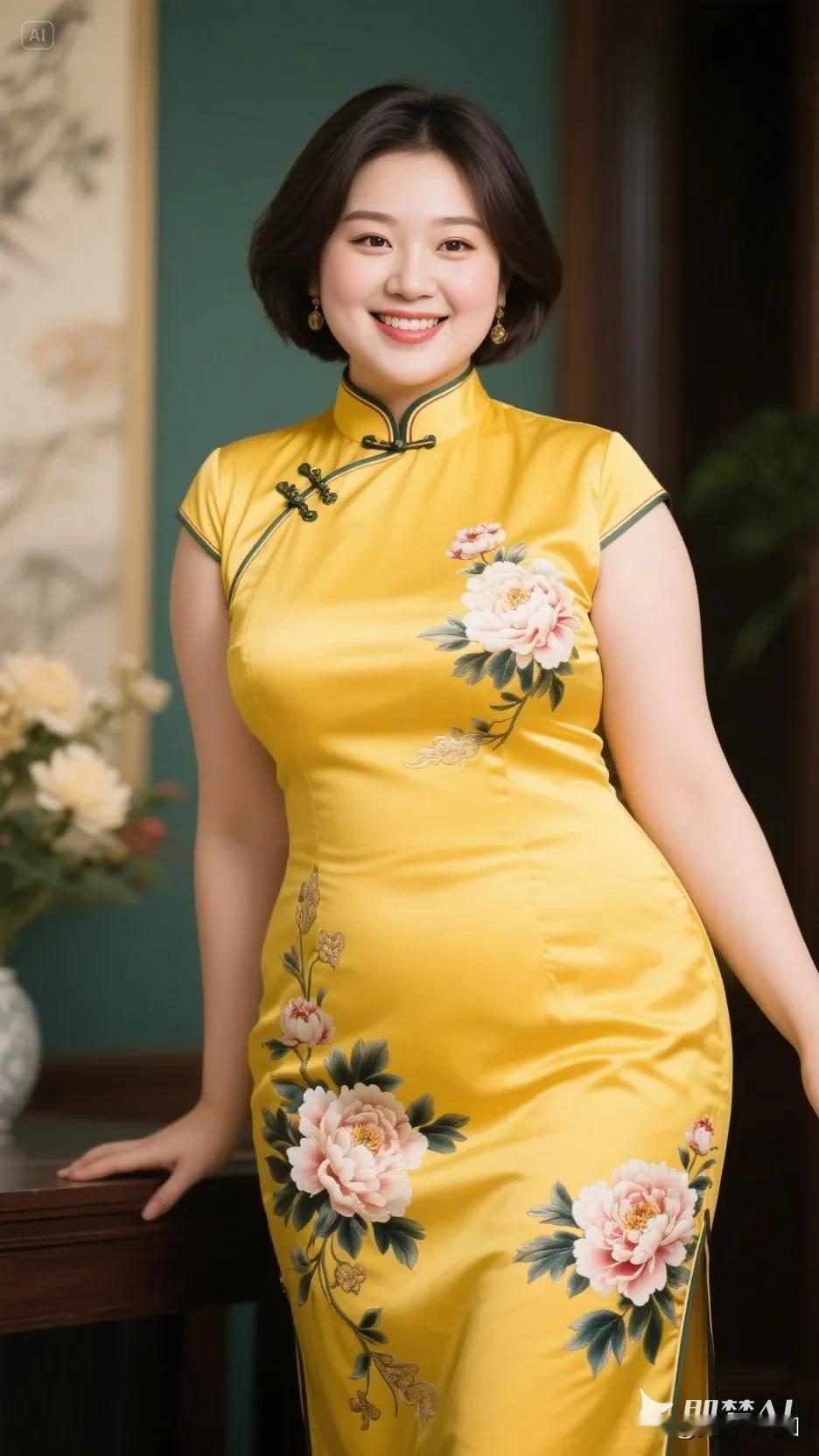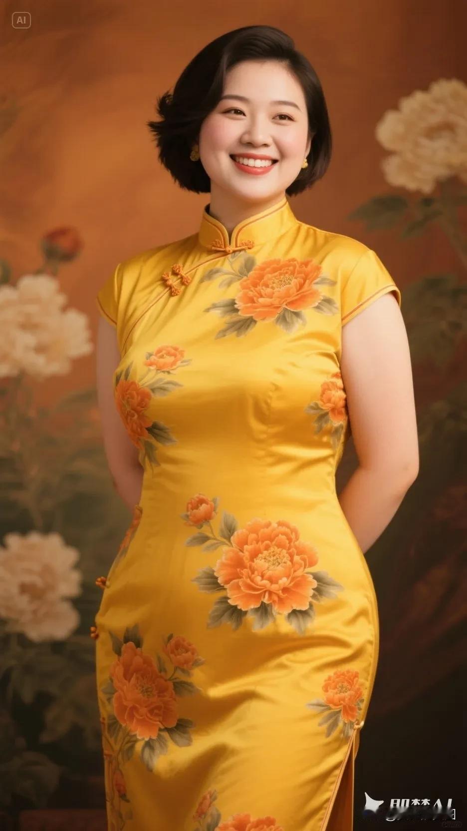 黄色牡丹旗袍美人微笑(177)为什么感觉穿旗袍的女性最漂亮懂你的人和爱你的人哪