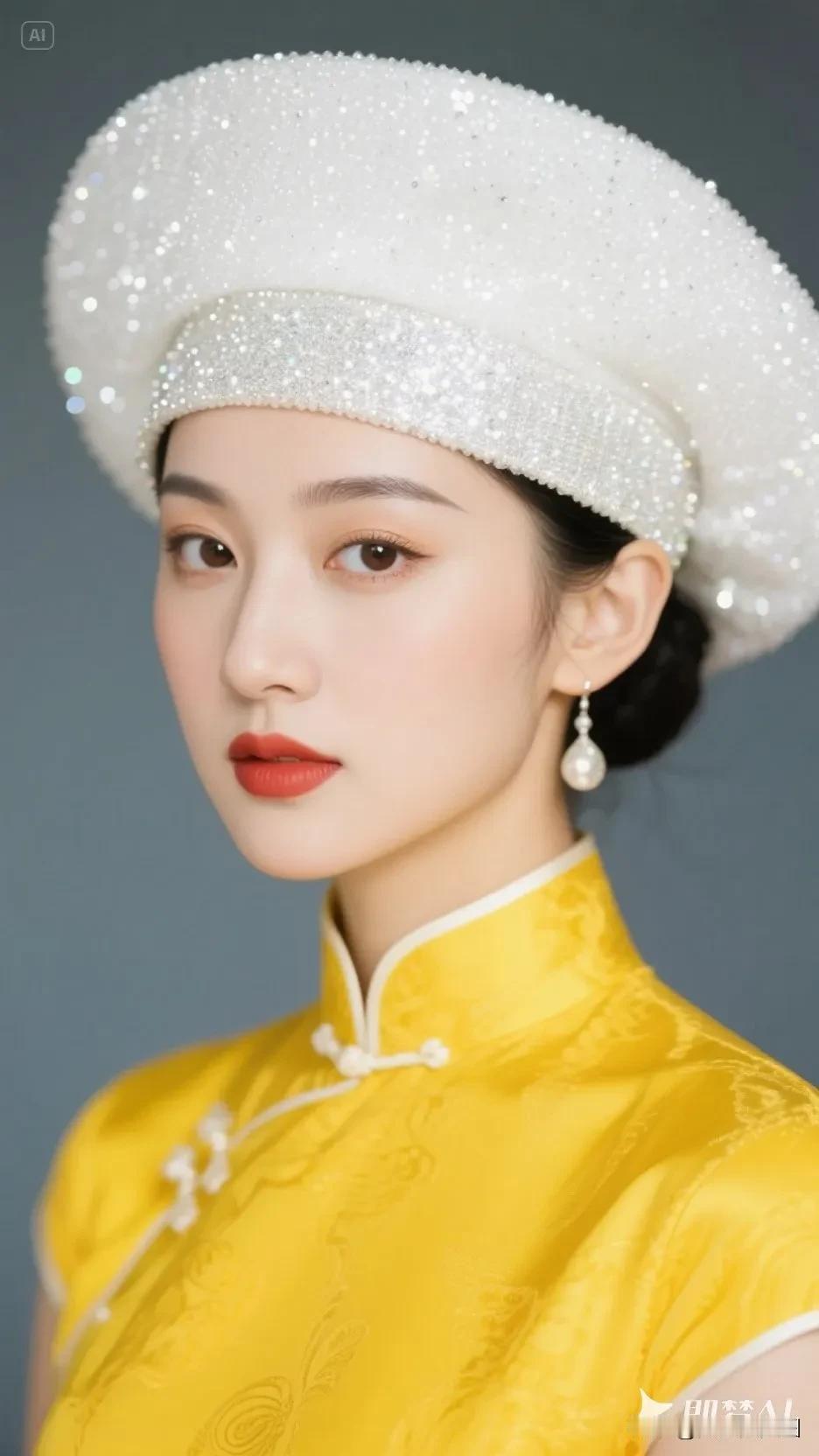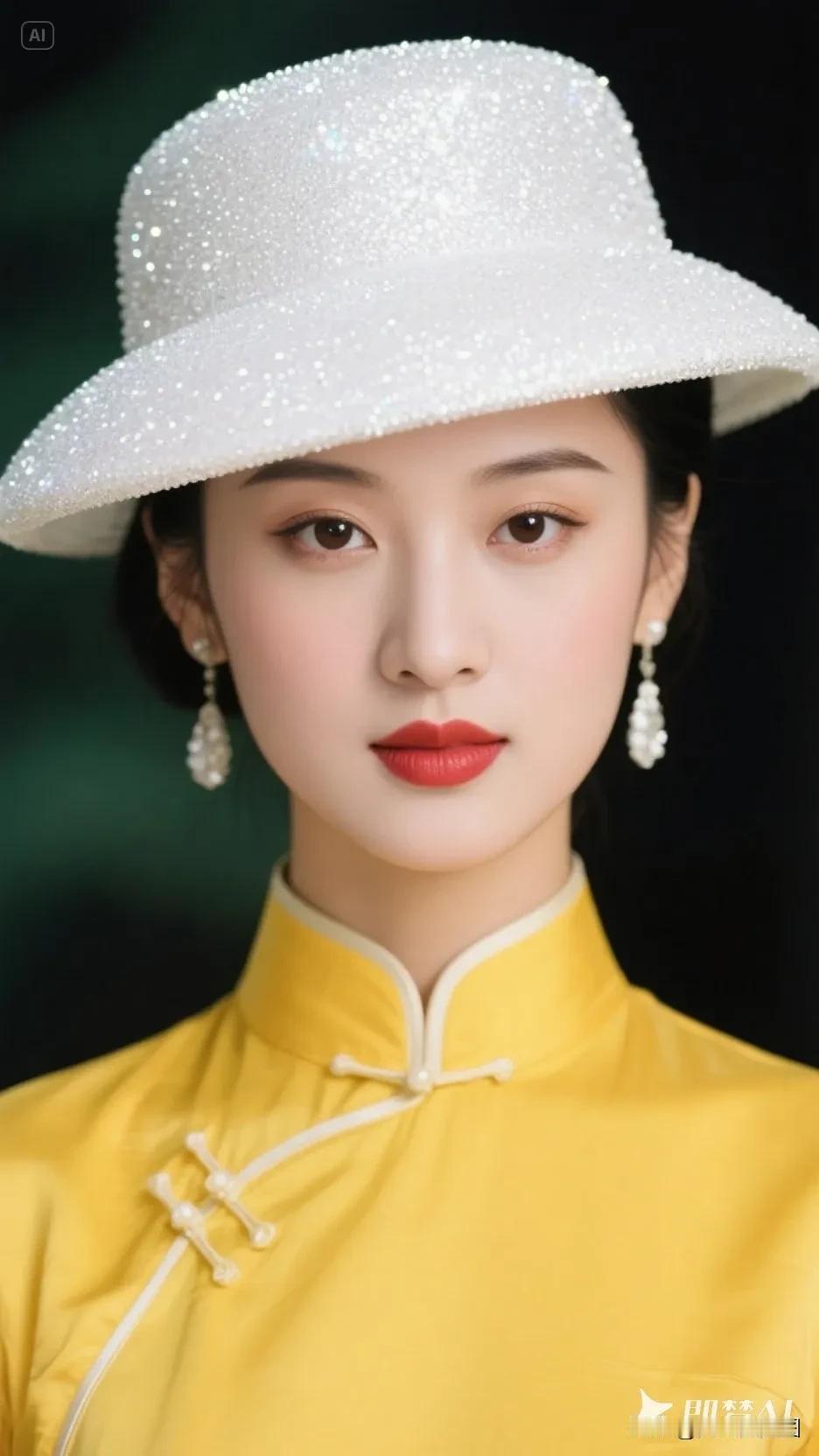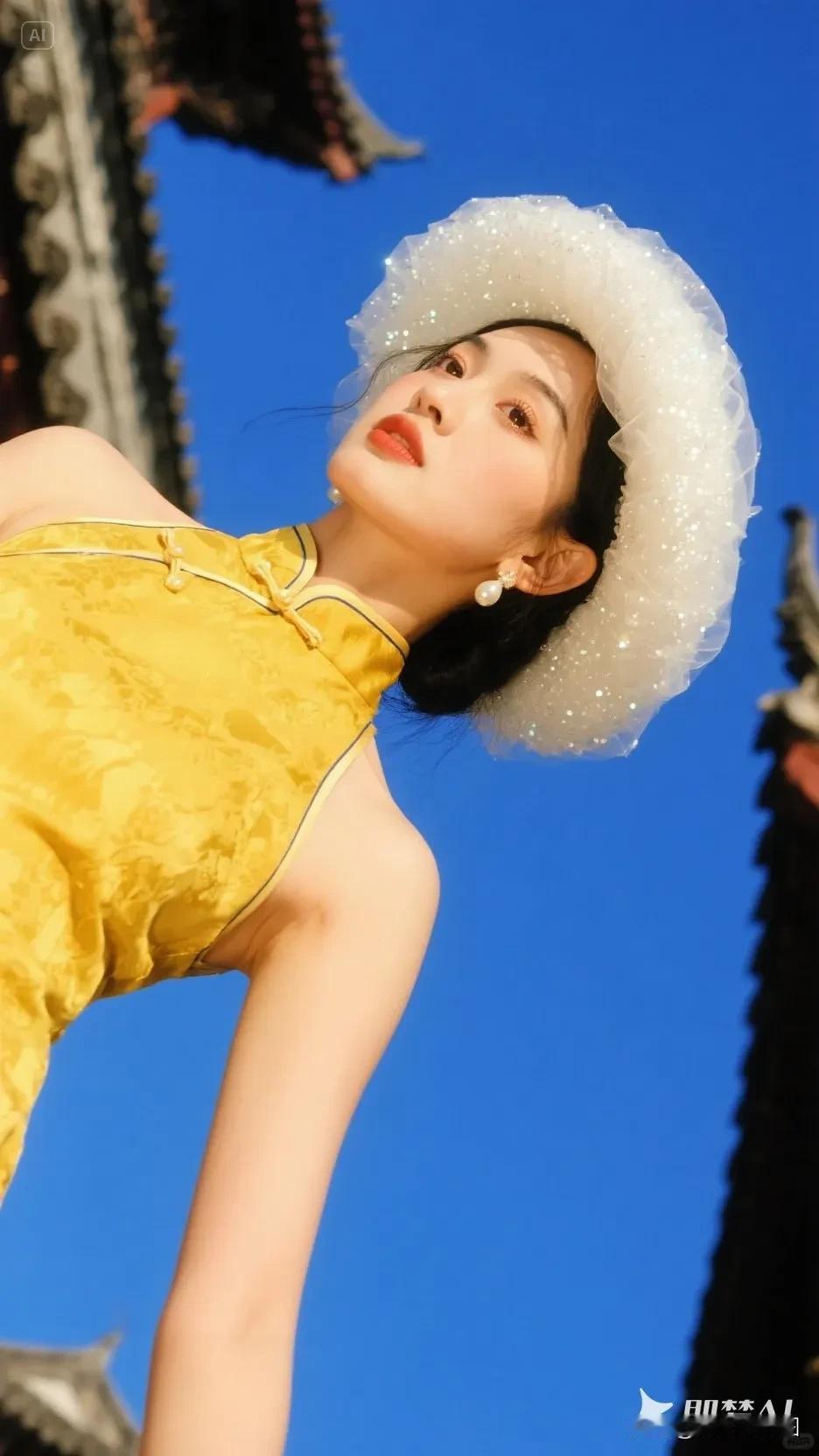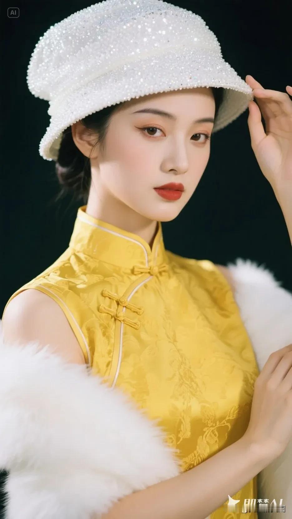 黄色帽子的旗袍美人,微笑美极了!