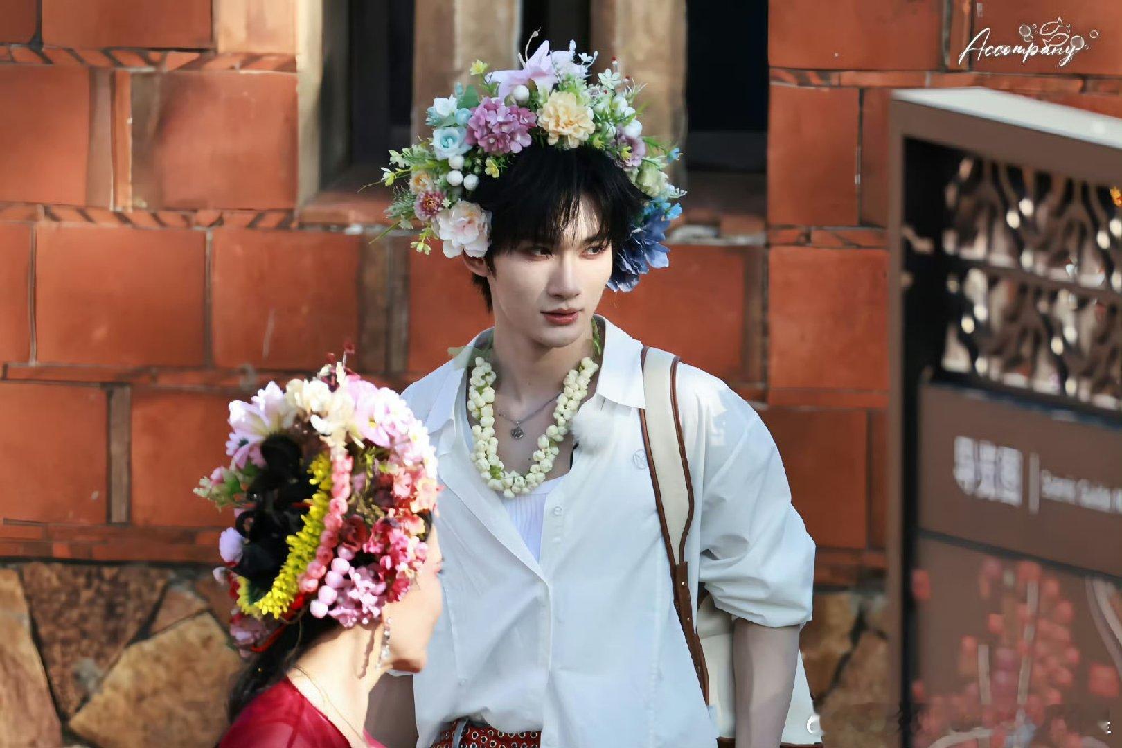 余宇涵簪花look被余宇涵《一路繁花2》造型帅晕!白衬衫簪花,氛围感直接封神。
