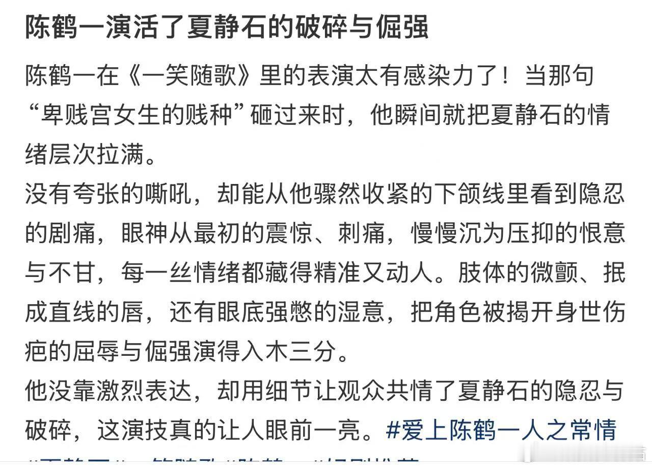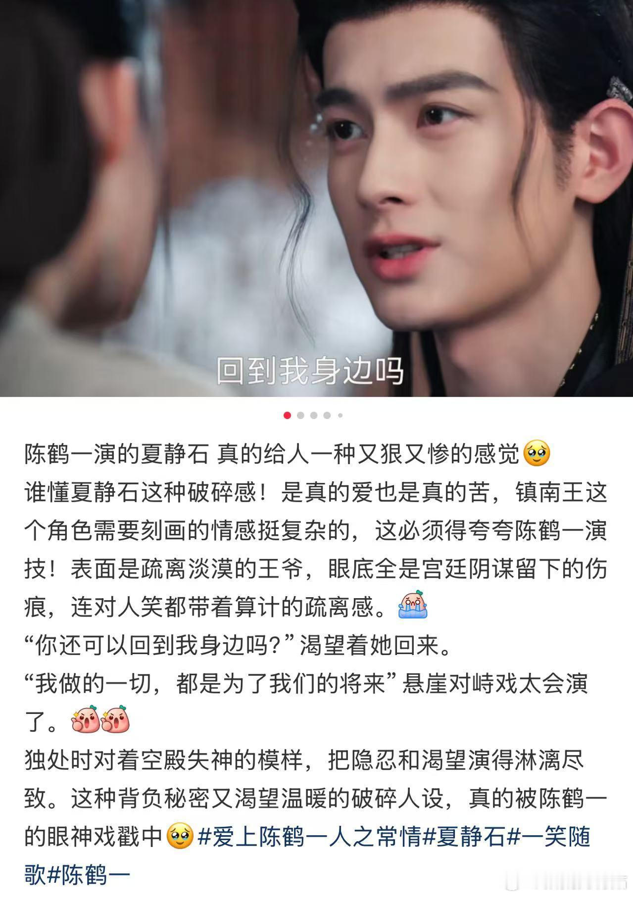 陈鹤一真的挺帅的~看一笑随歌挺喜欢他演的夏静石,然后我刷小红薯也看到很多人对他好