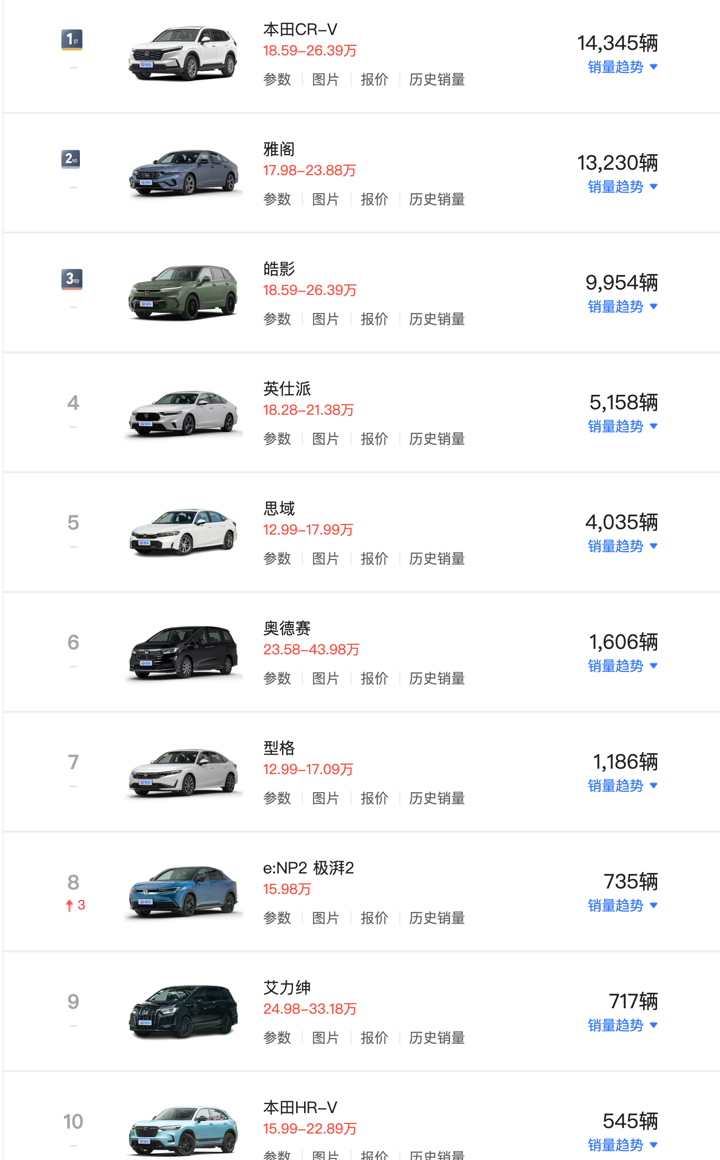 29月本田中国终端汽车销量为5.45万辆,同比下滑13.08%,只有两款车型过万。