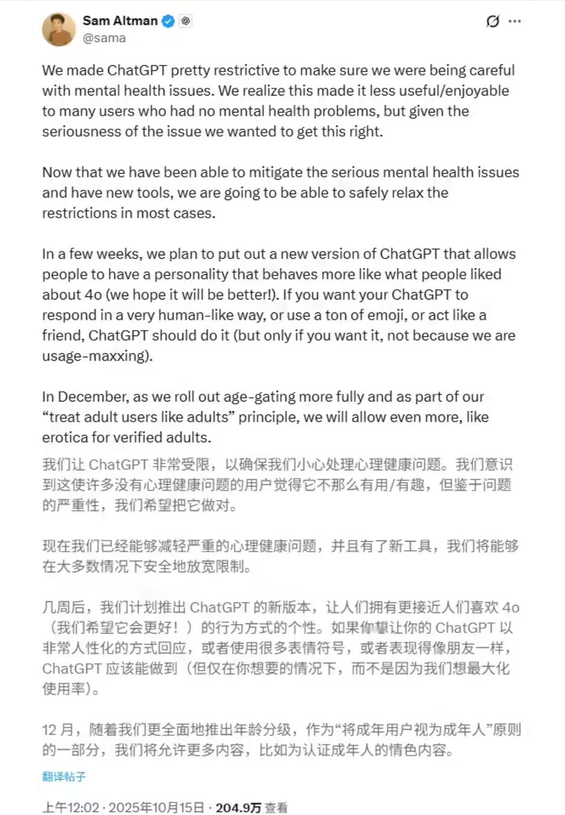 OpenAI将推ChatGPT成人模式科技向善,还是科技向恶?
